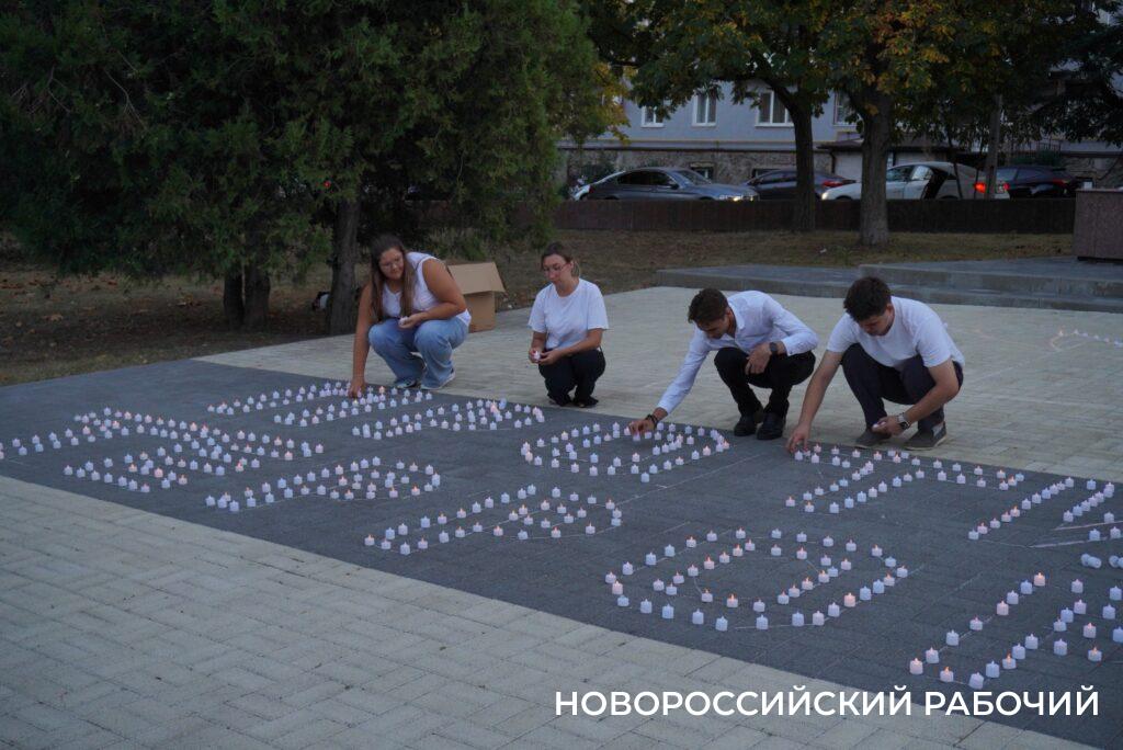 В Новороссийске День солидарности в борьбе с терроризмом прошел торжественно: накануне вечером, когда ночь опустилась на южный город, представители городских молодежных движений и общественных организаций в память о жертвах террора выложили фигуру из двух тысяч зажжённых свечей в сквере имени Рыбнева.