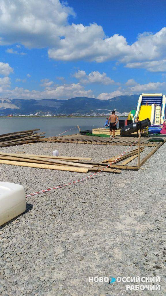 Однако далеко уезжать предприниматели не стали, прямо сейчас они собирают настил для пенного аттракциона на пляже Алексино, близ ресторана, расположенного у входе на пляж.