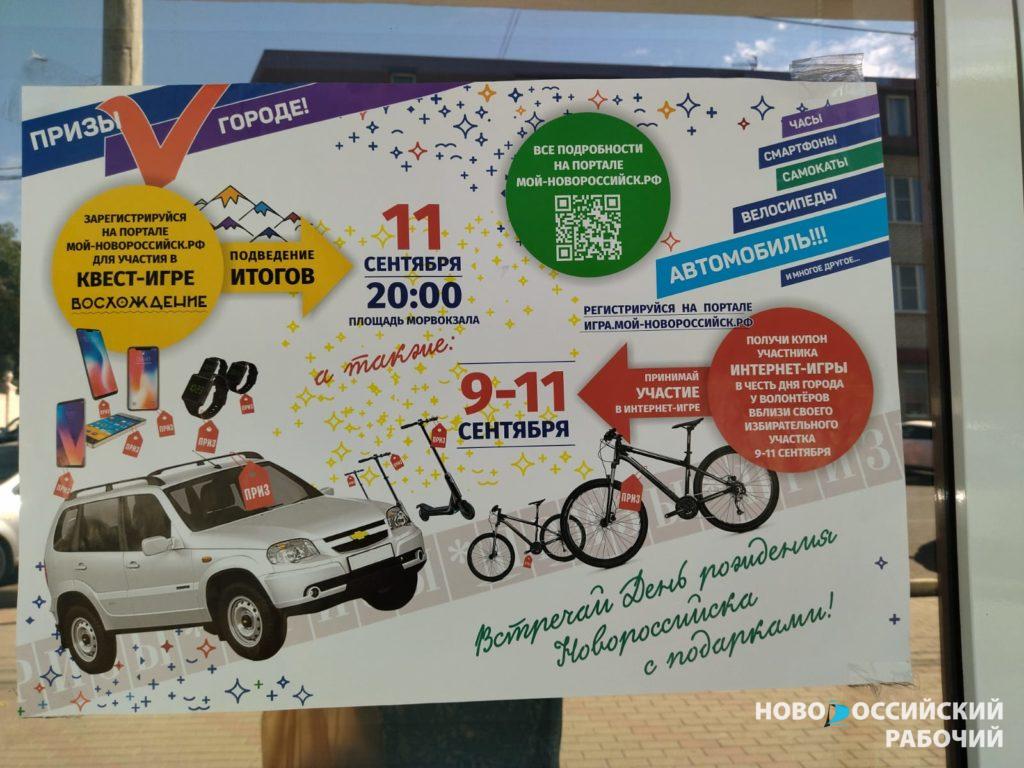 В рамках праздника власти организовали интернет -игру «Мой Новороссийск», квест-игру «Восхождение» и фестиваль воздушных змеев. Чтобы стать участником интернет-игры и получить шанс выиграть приз, нужен флаер. Его выдают на избирательных участках проголосовавшим и в центре тестирования ГТО- тем, кто в эти дни сдает норматив комплекса «Готов к труду и обороне».