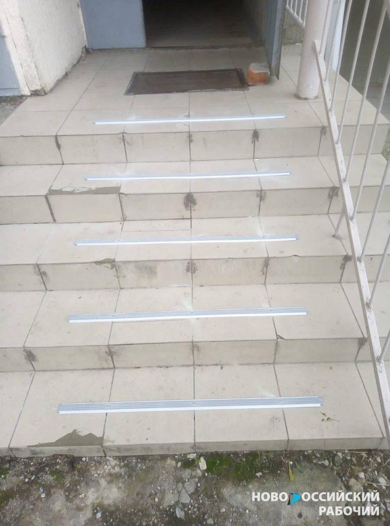 Буквально через час после того как материал был опубликован на сайте и в соцсетях «Новороссийского рабочего», к подъезду дома пришли рабочие, которые «пришурупили», по выражению Андрея, к плитке металлические планки с резиновыми вставками. По идее, они должны препятствовать скольжению.