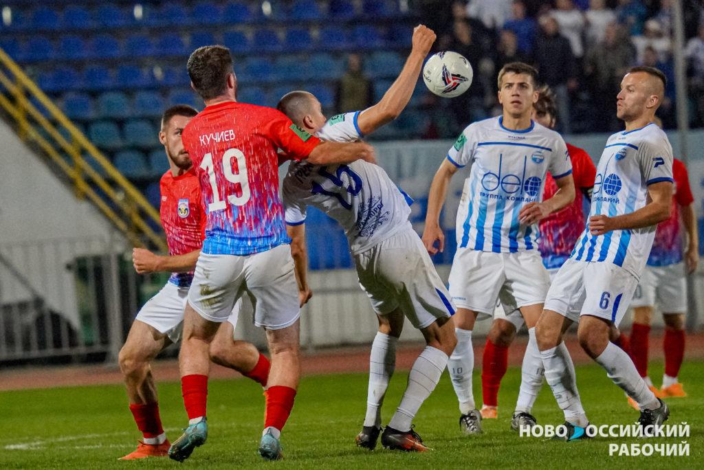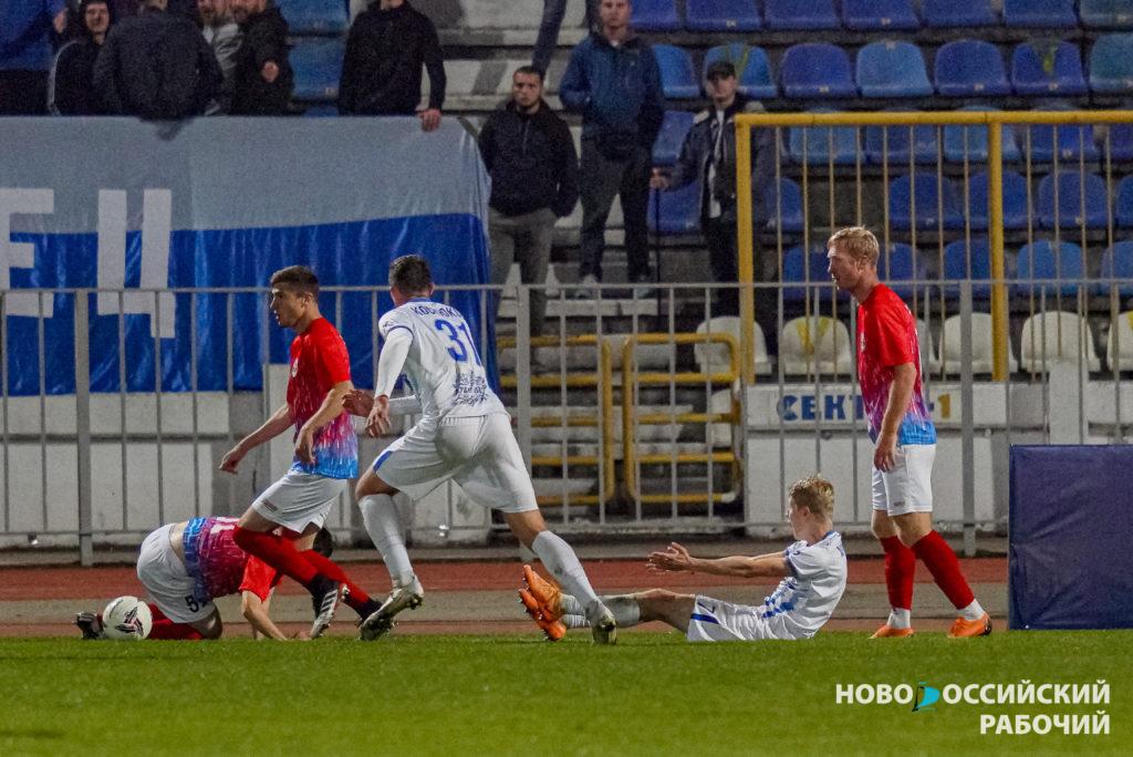 «Черноморец» продолжал давление на ворота соперника, но в концовке первого тайма пропустил контратаку и главный арбитр встречи Дмитрий Стрельцов из Ростова-на-Дону назначил одиннадцатиметровый удар в ворота «Черноморца». Как выяснилось после матча, решение это было ошибочным, но счет, как говорят, — на табло и в протоколе. Георгий Кучиев пенальти реализовал, и команды отправились на перерыв, 2:1.