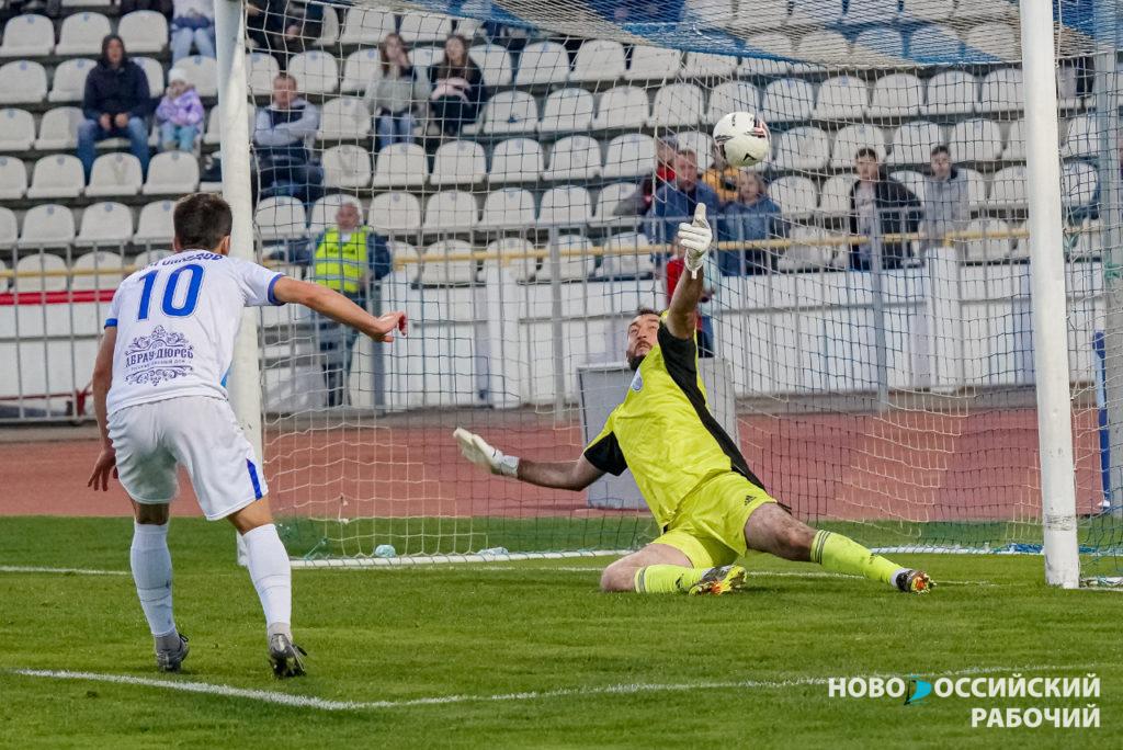 Отчетный матч с пятигорской командой для бело-синих легкой прогулкой не был. Главный тренер хозяев поля Константин Зырянов победный состав предыдущего матча с «Дружбой» менять не стал. Бело-синие по традиции с первых минут обрушили шквал атак на ворота противника, но на сей раз открыть счет в самом начале встречи им не удалось. Опытный вратарь гостей Давид Гиголаев, который в матче первого круга в Пятигорске спас свою команду от поражения, снова действовал четко и уверенно. Ровно до 21 минуты игры, когда «Черноморец» вскрыл левый фланг обороны «Машука-КМВ». Муслиму Шихбабаеву оставалось найти точной передачей во вратарской площади своего партнера, что он и сделал. Владислав Руденко записал на свой счет пятый гол в первенстве страны, 1:0.