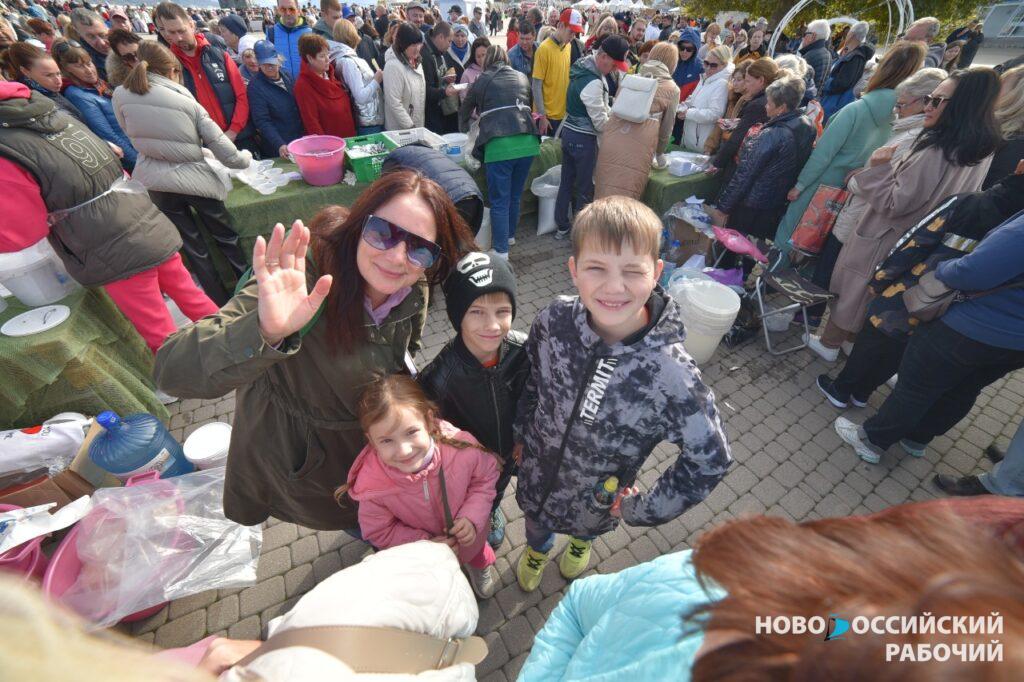 Форумная площадь, большая очередь к прилавку, где не покладая рук женщины накладывают в пластиковые миски хамсу и кильку. Знакомлюсь с крайними в очереди: Сергей Рыльский из Херсонской области сейчас семьёй отдыхает в Геленджике. В Новороссийск приехал на фестиваль, планирует поучаствовать в бесплатной дегустации.