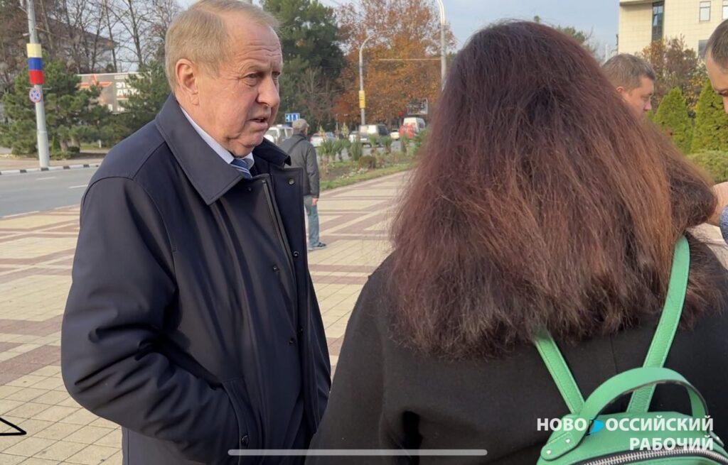 К людям вышел председатель городской Думы Новороссийска Александр Шаталов.