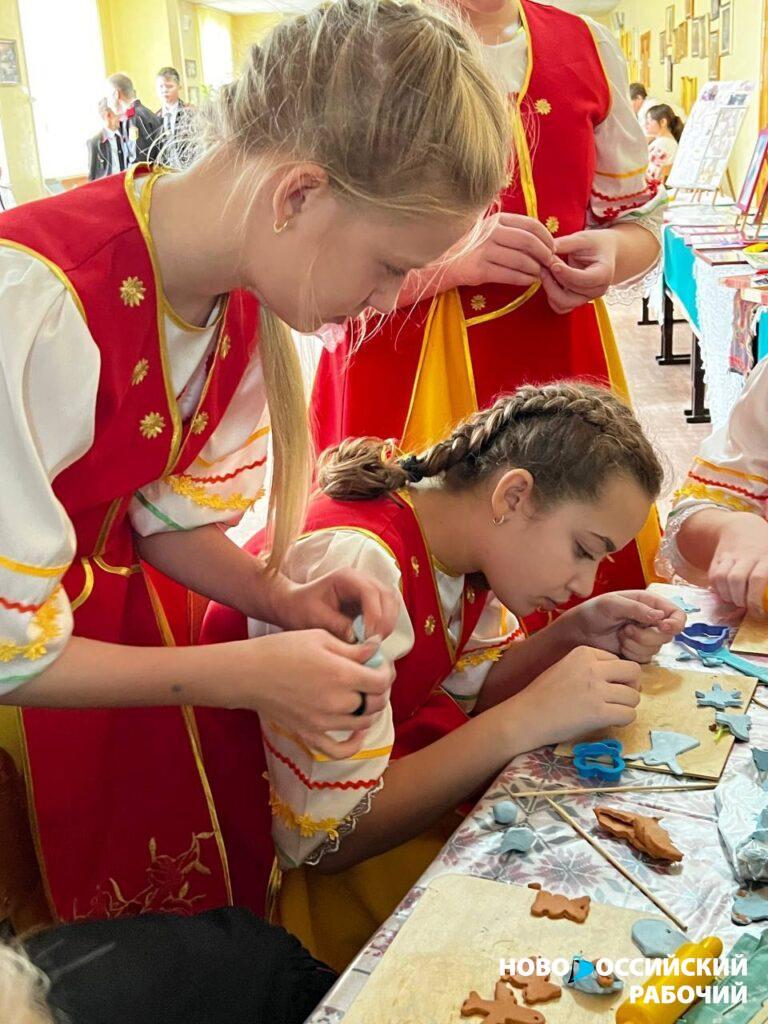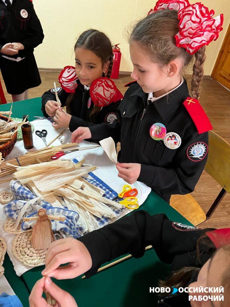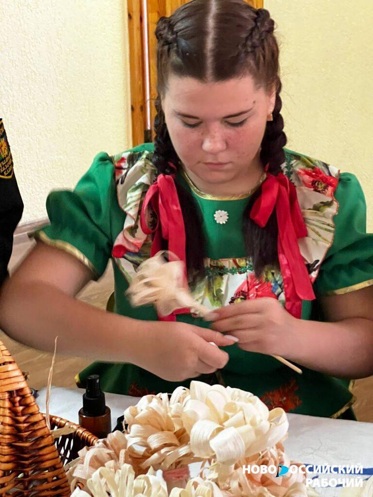 «Ребята из казачьей школы №25 привезли аж три мастер-класса. Тут увлеченно работают с глиной, тут — плетут цветы из талаша, несправедливо забытого материала (кукурузные листья – прим.ред.), учатся азам ткачества. Юные мастера из 25 школы под руководством Инны Евгеньевны Лебедьковой обучают ровесников и ребят постарше своему мастерству.