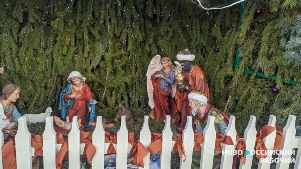 Новороссийцы продолжают идти в храмы, чтобы помолиться и поставить свечи за здравие. В центральном соборе Новороссийска — Свято-Успенском кафедральном — установлен во дворе вертеп с фигурами главных героев той волшебной ночи, когда родился Иисус Христос. Глиняные фигурки для этой инсталляции храм специально заказывал за рубежом.