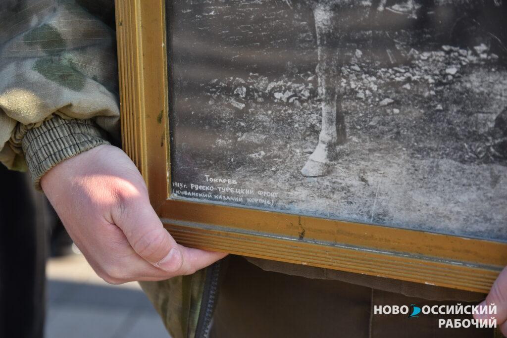 Почтить память своих предков многие пришли с портретами своих боевых стариков. Мое внимание привлек Александр Токарев, у которого в руках фотография прадеда – на коне, на фоне крепости, – Ивана Токарева, участника русско-турецкой войны. Александр Токарев потомственный казак, заместитель атамана по работе с молодежью в Центральном станичном казачьем обществе Новороссийска.