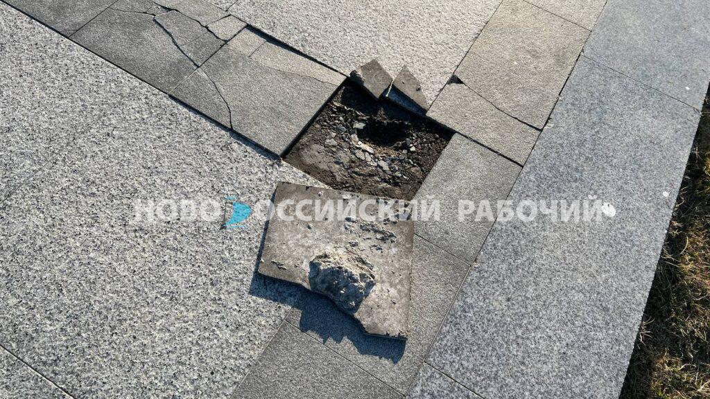 Начались восстановительные работы и на дорожках к стеле на Малой Земле. Выбита старая плитка, сложена аккуратными кучками.