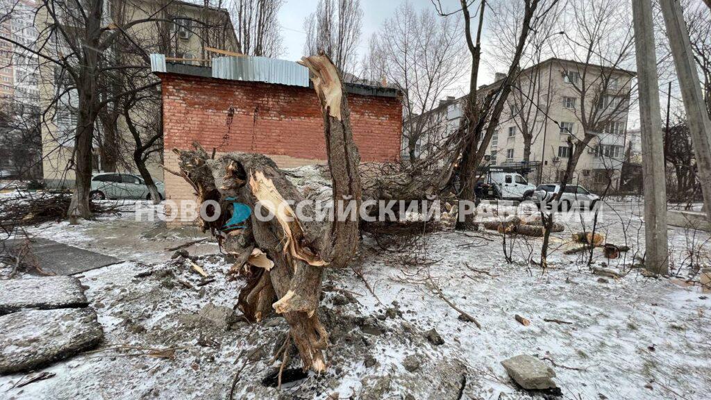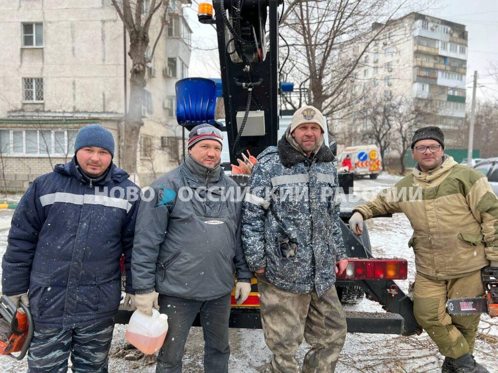 Бригаду Центра озеленения и благоустройства корреспонденты «Новороссийского рабочего» застали на пр. Ленина, 85, где возле трансформаторной будки огромное старое дерево рухнуло на легковую машину. Убрать дерево надо было аккуратно, чтобы еще больше не покорежить автомобиль, которому и без того досталось.