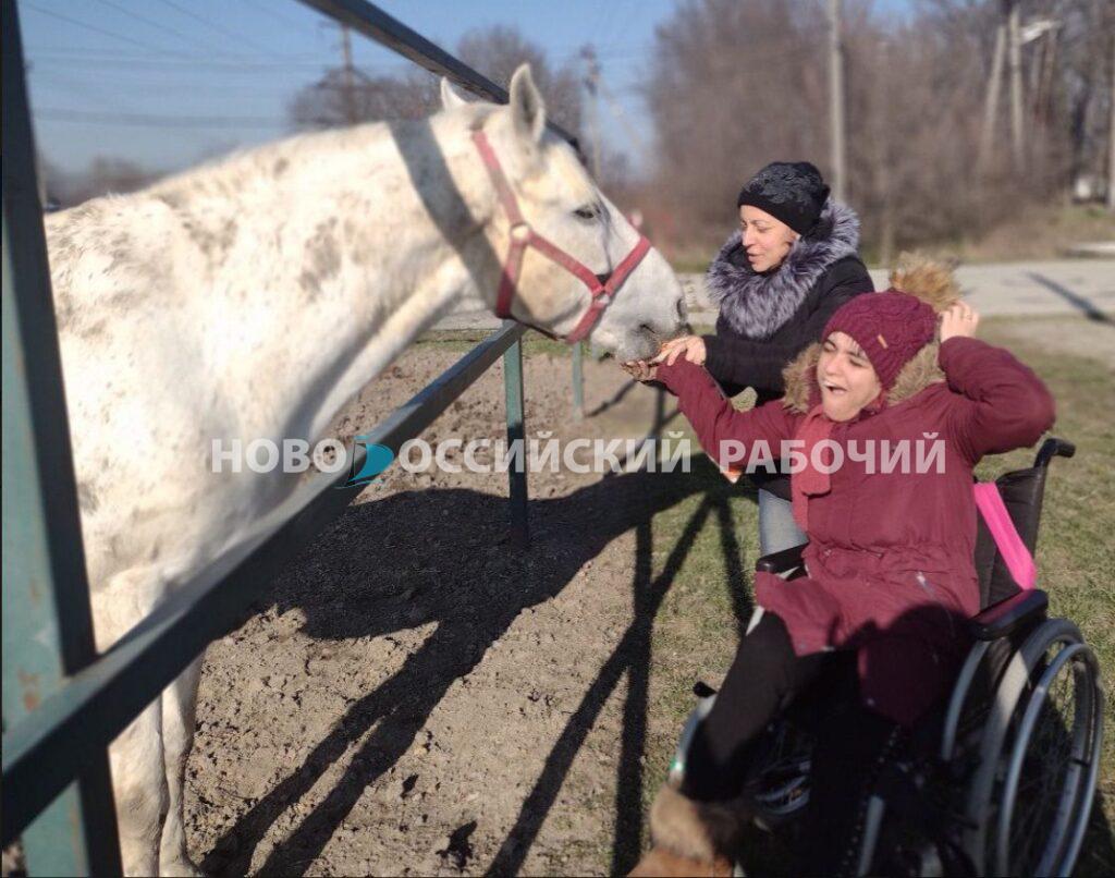 Лилия, мама Алёнки, говорит, что она с дочерью здесь не первый раз. Девочка любит приезжать в конюшни спортивной школы «Пегас», что в станице Раевской, где развито одно из экзотических направлений в реабилитации инвалидов – иппотерапия. Нет, Алёнка, инвалид первой группы, имеющая ДЦП с рождения, на ноги из инвалидной коляски, как говорят врачи, не встанет. Но её настроение, её жизнь определённо меняются в лучшую строну, когда она общается с лошадьми.