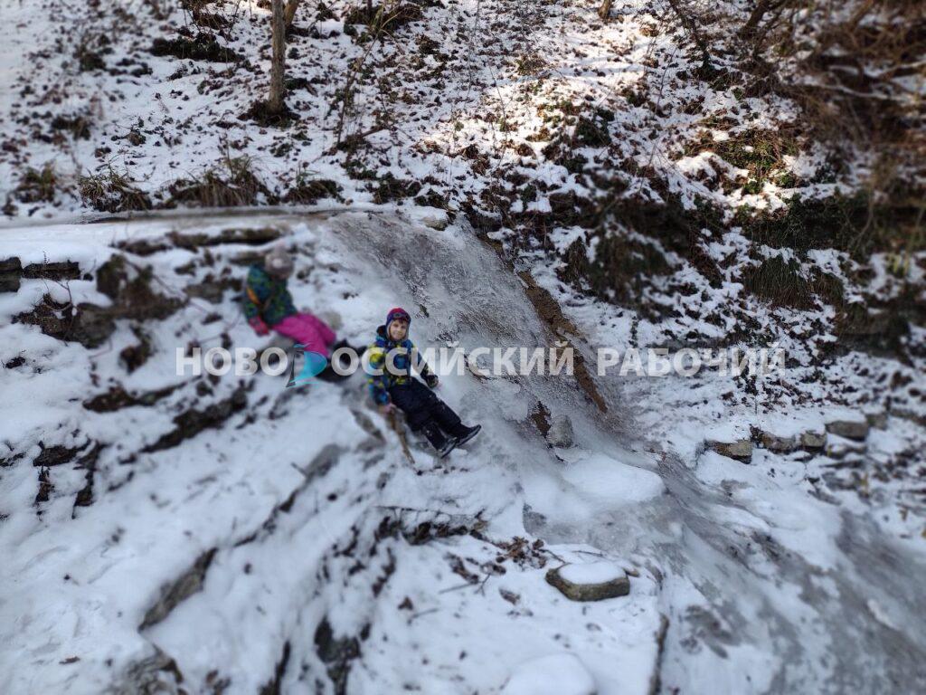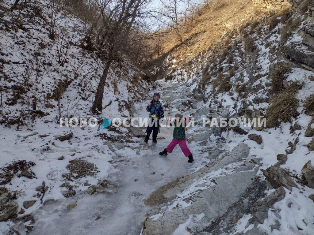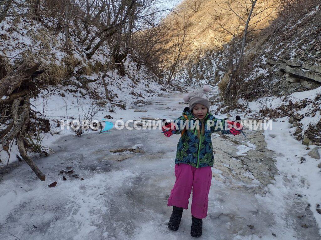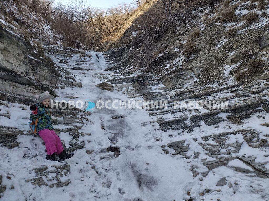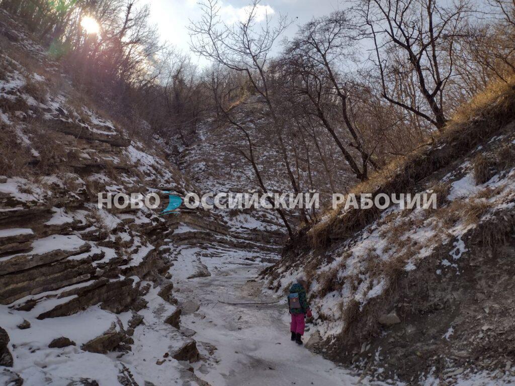 Даже в это время года, когда невозможно рассмотреть всё многообразие растительного мира щели, здесь красиво. Горные породы ущелья открывают взору свой причудливый узор. Глыбы песчаника, на которые можно взбираться, ответвления в виде сухих ручьёв, по ним можно подниматься, как по лестнице, и делать запоминающиеся кадры. Склон плачет десятками сосулек, к которым мои дети припадают, как страждущие в пустыне. Где ещё найдешь столько чистой родниковой воды?
