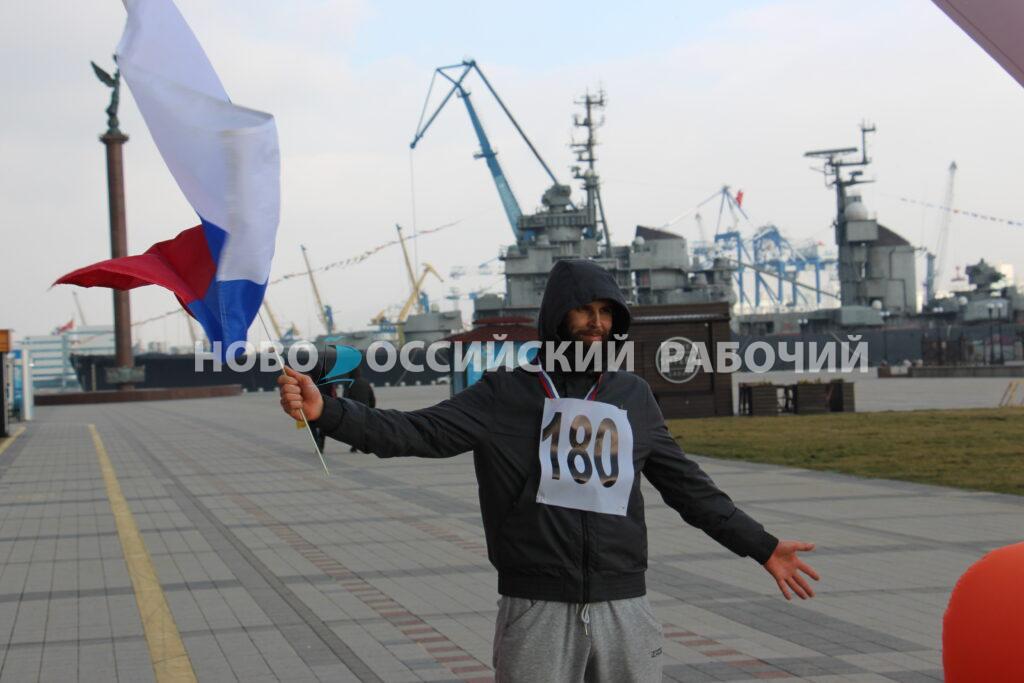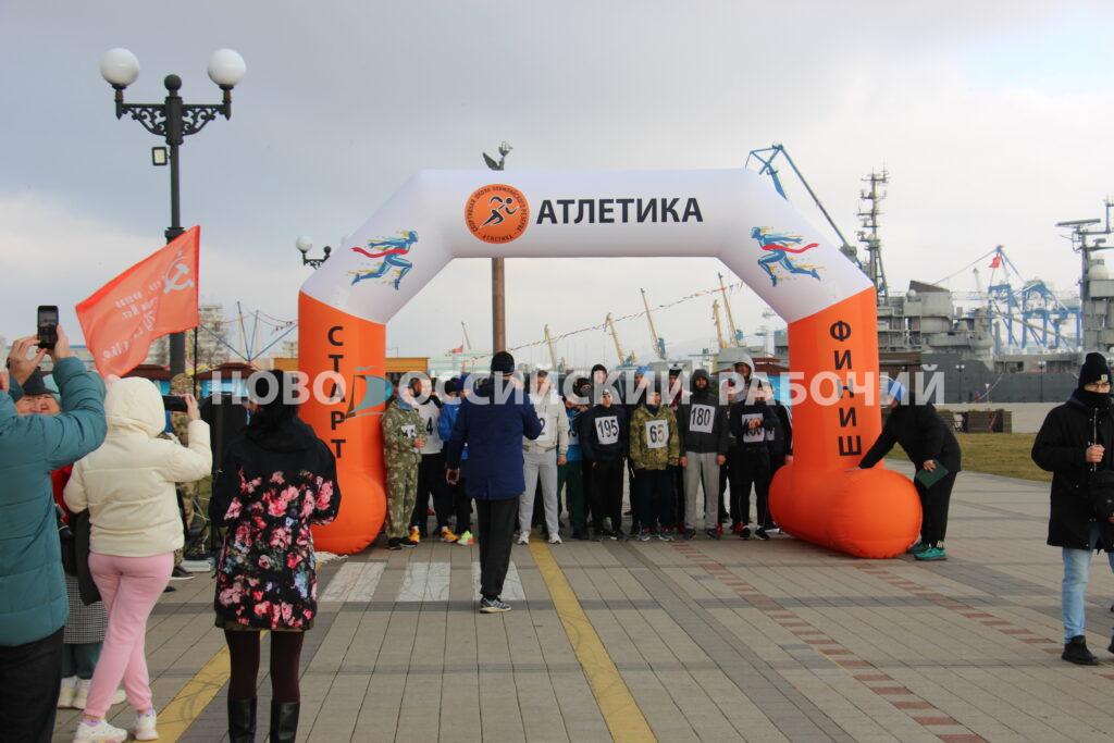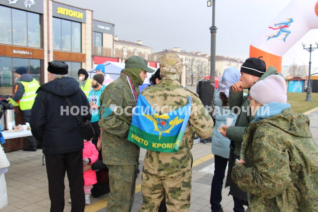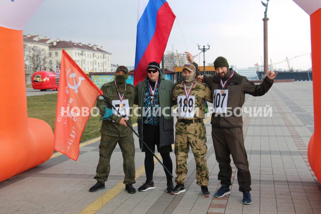 Около 50 спортсменов и просто любителей здорового образа жизни с красными знаменами, флагами России и флагами Воздушно-десантных войск приняли утром 23 февраля участие в «Zабеге мужества» по городской набережной.