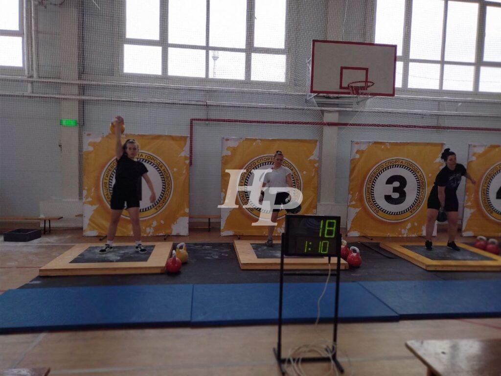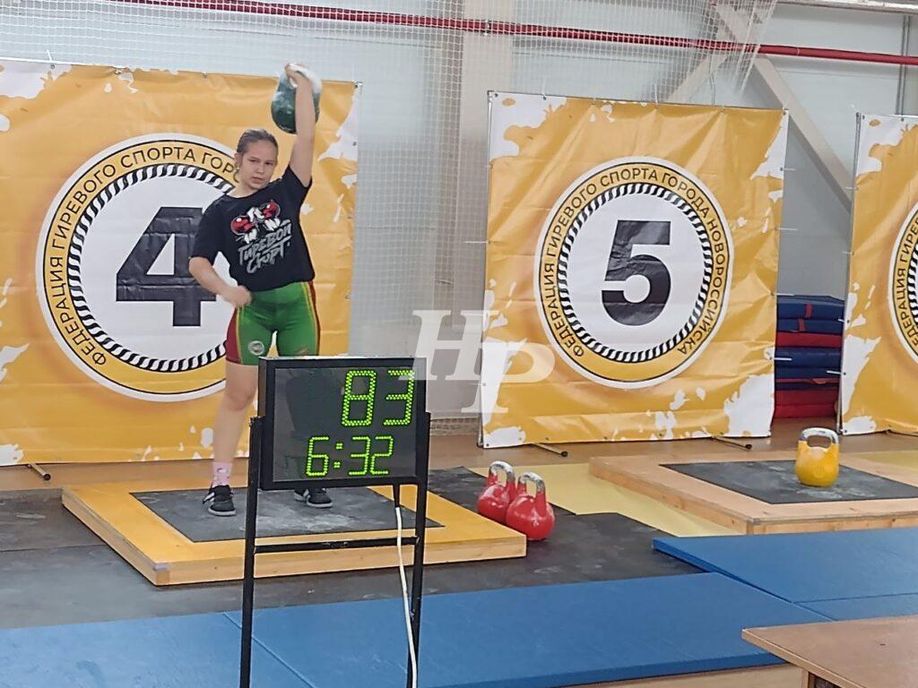 И вот сейчас разминаются прекрасные леди. Это выглядит впечатляюще – 16-килограммовая гиря порхает над головой, будто пластмассовая. Женщины выходят на передний план, перед каждой установлено табло, отсчитывающее время и показывающее число повторений. Они соревнуются в дисциплине «рывок».