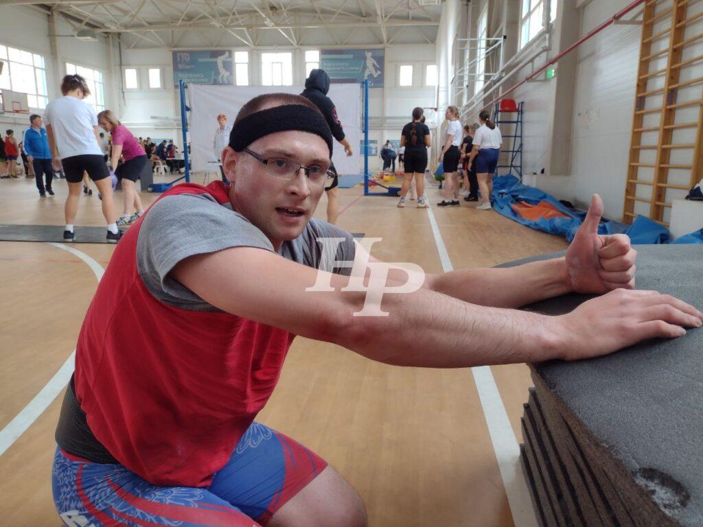 В этой тройке наметился явный лидер, в результате он один остаётся на сцене. Электронное табло подсказывает, что он за десять минут поднял гирю 146 раз! Победитель падает на стопку матов и бешено дышит, будто ему не хватает воздуха. Знакомимся. Это Максим Филиппов из Краснодара, ему 29 лет, спортсмен работал в весовой категории 95+ кг. Четыре последних года он занимается гиревым спортом, уже заработал «мастера».