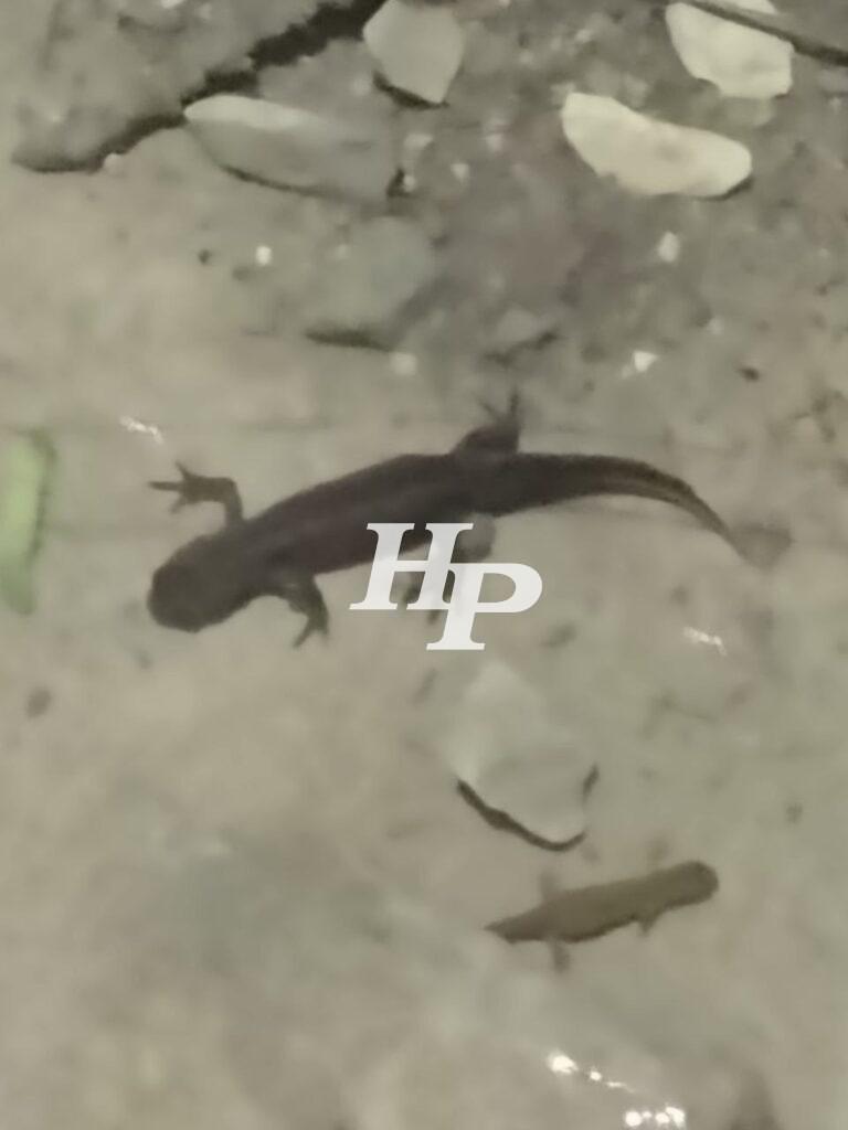 Корреспондент «НР» незамедлительно выехала по указанному адресу. И, действительно, в бетонированной ливневой канаве на улице Ильича поздним вечером увидела двух взрослых особей и 18 маленьких тритончиков. Пока наблюдала, как самка под водой поедает дохлую гусеницу, почувствовала шевеление на своем ботинке. Опускаю фонарик вниз и замираю – крупный тритон ползет по моей ноге. Я его чуть не раздавила!