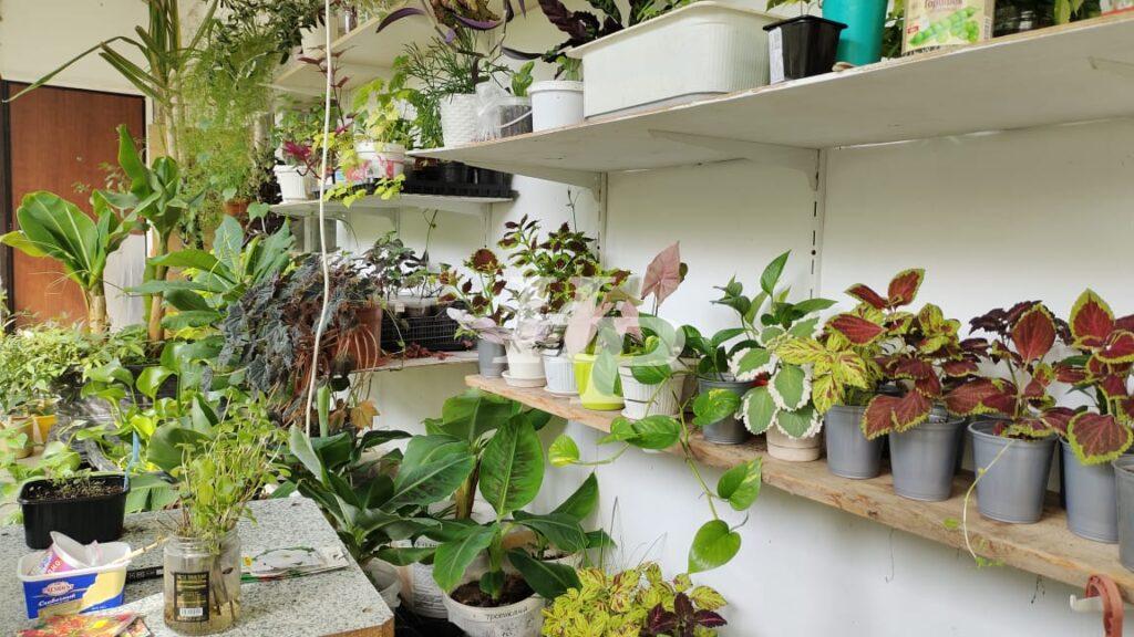 ВИТАЛИЙ показывает мне горшок с травой, похожей на нашу русскую крапиву. Это дебрегеасия.