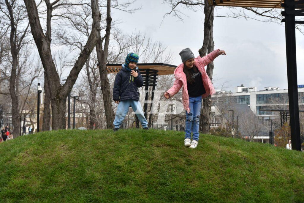 — Сейчас оценить сложно, нужно, чтобы парк пережил лето, норд-ост и сильный ветер, — говорит общественница. – А что понравилось? Очень симпатично смотрятся навесные дорожки, амфитеатр лучше выглядит, чем был предыдущий. Хотелось бы ещё больше зелёных газонов вместо декоративной мраморной крошки. Трава поглощает солнечную энергию.
