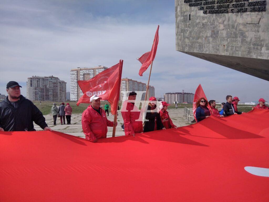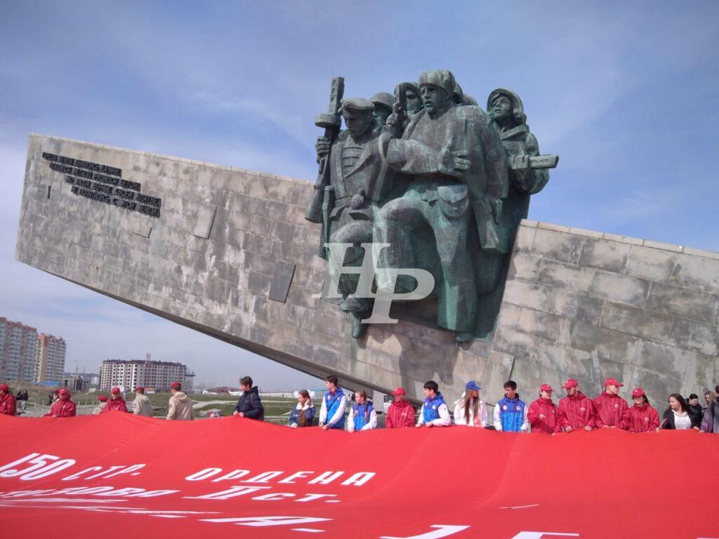 В Новороссийске участники проекта «Наша Великая Родина» посетили мемориальный комплекс «Малая Земля», совершили экскурсию в Галерею боевой славы и развернули двухсотметровое знамя возле главного памятника города-героя. После этого делегация отправилась на площадь Героев и возложила цветы и венок у подножия Вечного огня, почтив память павших защитников Новороссийска минутой молчания.