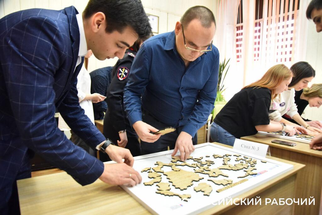 В конце марта сражались, склонившись над картами, студенты, чьи будущие профессии имеют отношение к педагогике, а также школьные учителя, преподаватели вузов и наставники Молодёжных клубов Русского географического общества. В непростой борьбе победила команда педагогического колледжа. Будущие учителя собрали карту России за 2 минуты 30 секунд.