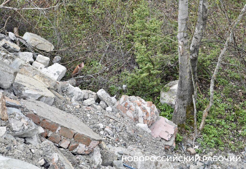 Смотрим на дно ущелья. Там – строительные отходы, бытовой и строительный мусор. Когда-то живописное ущелье постепенно превращается в свалку.