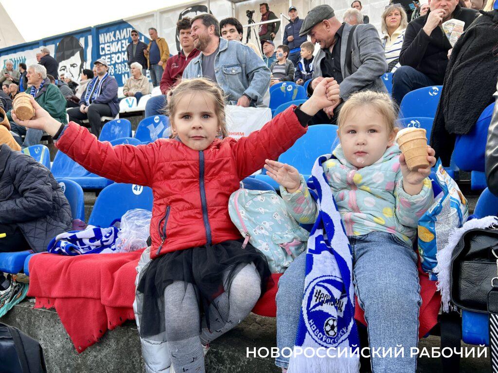 Уверена, что поддержка новороссийцев — одна из причин победы бело-синих. «Поболеть за наших ребят пришли 4100 человек», — сообщили мне из управления спорта. Среди них взрослые и дети всех возрастов и национальностей. Малыши не отрывались от игры и забывали о таявшем десерте в руках. Старики вспоминали, какими были их походы на футбол в юности.
