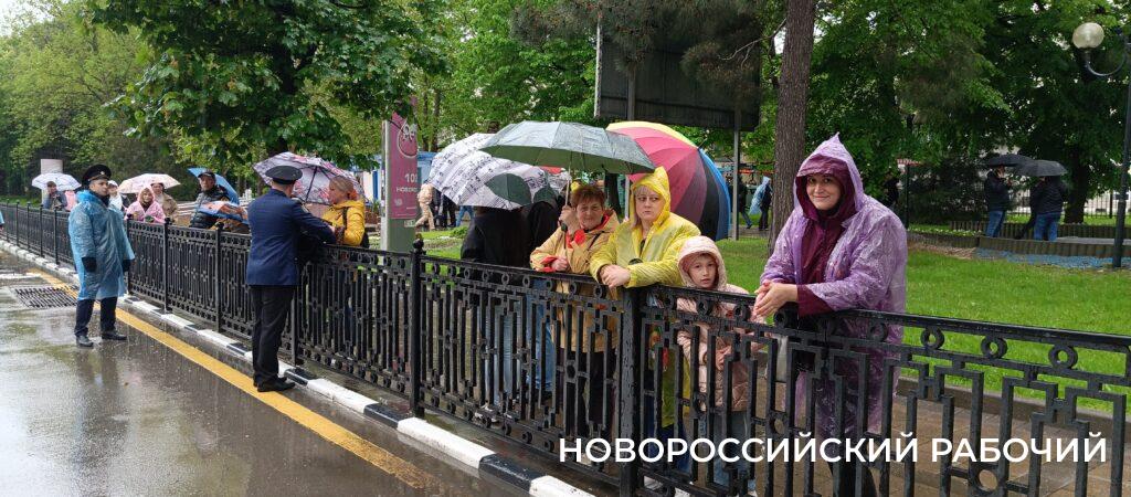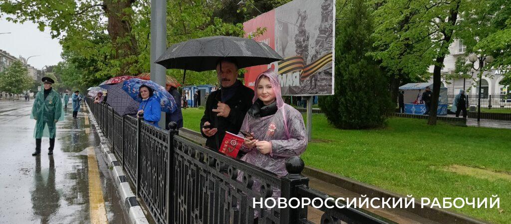 Несмотря на дождь, на улице Советов уже появляются первые зрители. Они серьезно подготовлены – с зонтиками и в дождевиках. Все надеются, что к началу парада дождь прекратится.