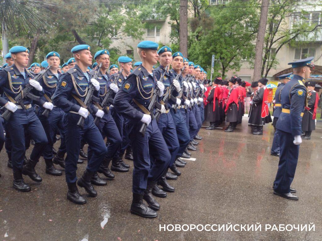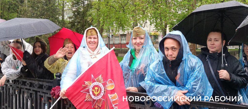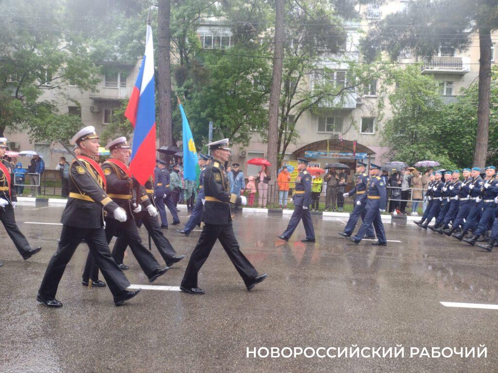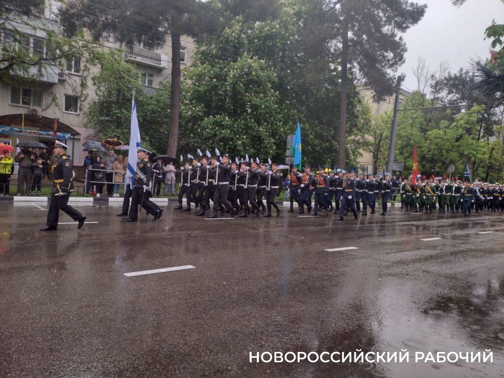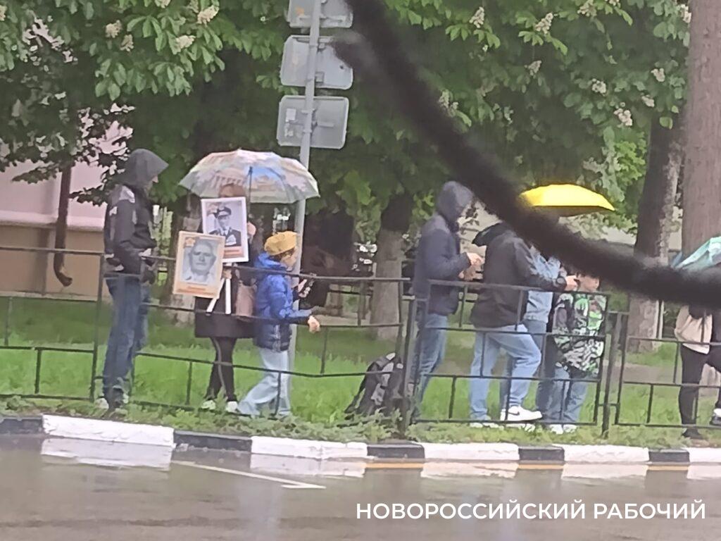Сердобольные зрители, которые собрались посмотреть на парад, больше всего жалеют юнармейцев. У них светлые костюмы и видно, что они промокли почти насквозь! Но и другим военным, конечно, досталось.