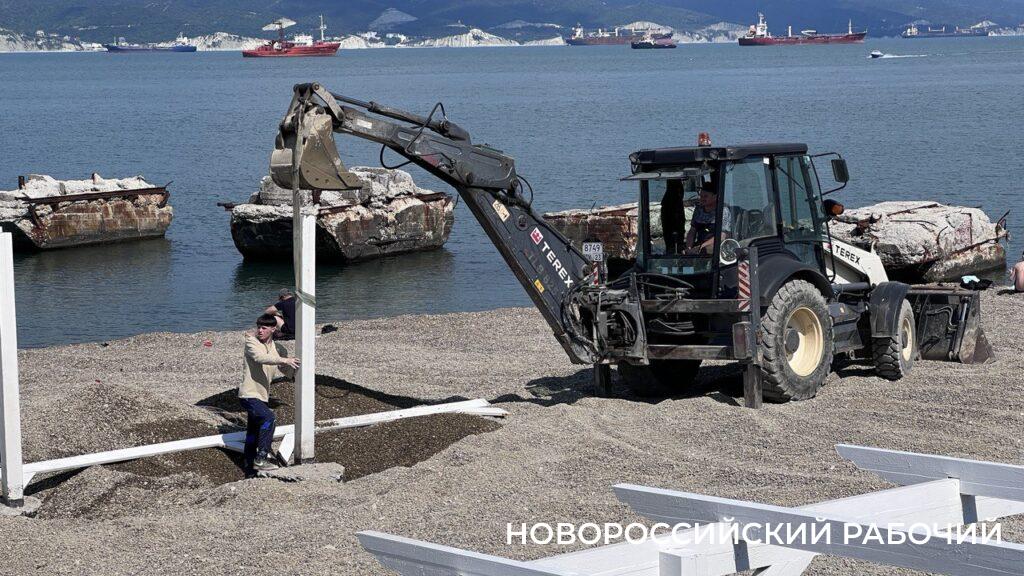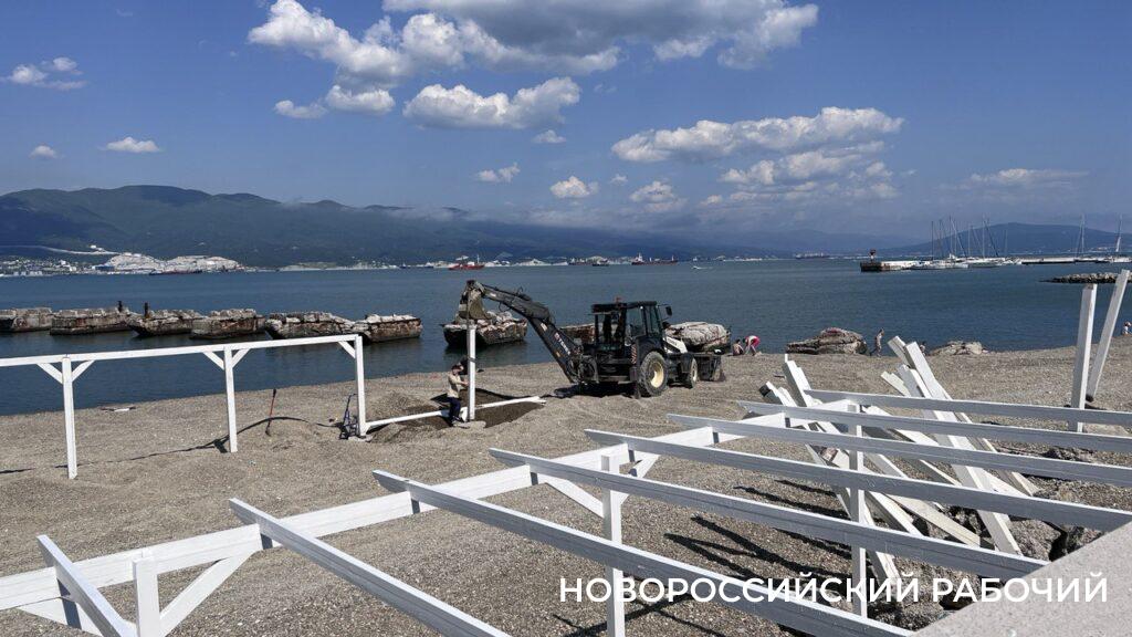 Вовсю идут работы по обустройству пляжной территории идут в эти дни на пляже «Кристалл»  (район бывшего рыбзавода).