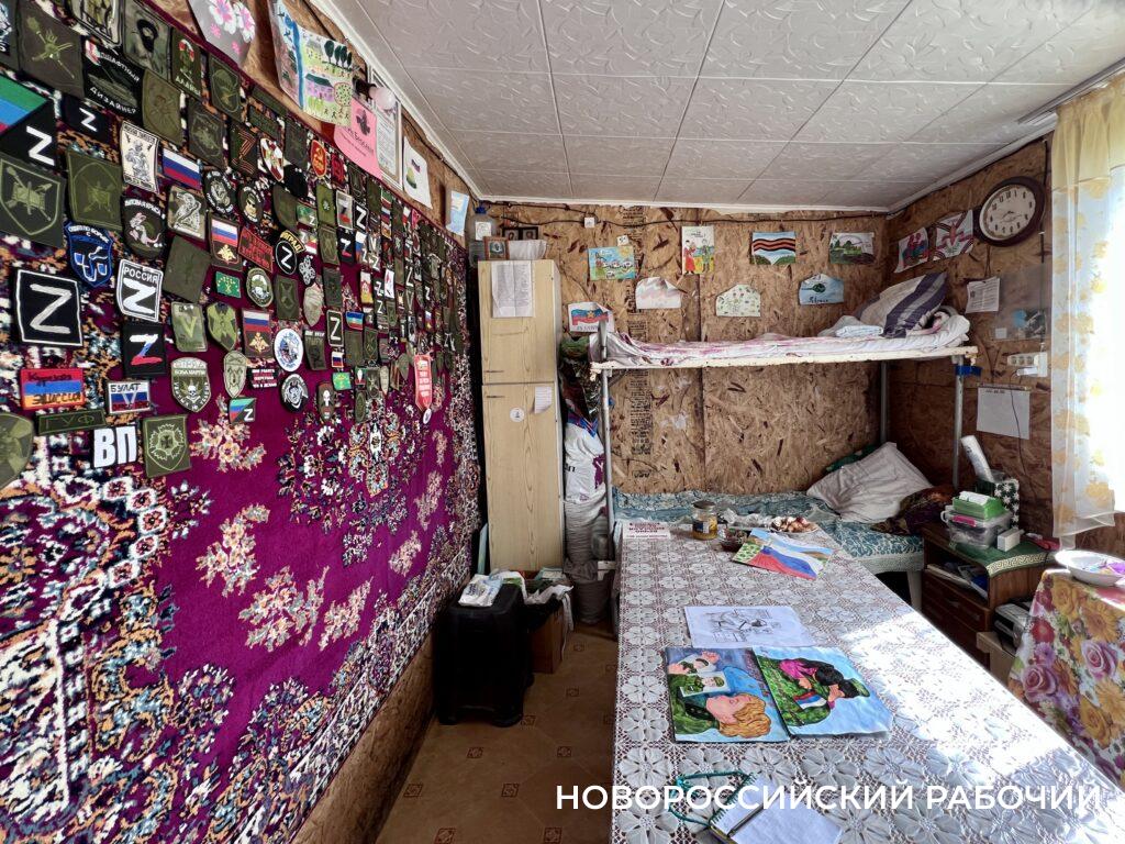 У всех женщин свой, эксклюзивный, позывной. Главнокомандующий Валентина Рогалёва, она же «Заря», уже захвачена процессом подготовки к встрече военных, так что не может общаться с журналистской бригадой. «Звёздочка» более словоохотливая и пока свободная, она и проводит нам экскурсию по привалу. Первое помещение – это спальня на несколько коек, тут военные останавливаются с ночёвкой. Или просто подремать час-полтора перед долгой дорогой, если есть такая возможность. В спальне на верхней кровати хранятся три иконы, одной из них, иконе Божией Матери, более сотни лет, её подарили добрые люди.