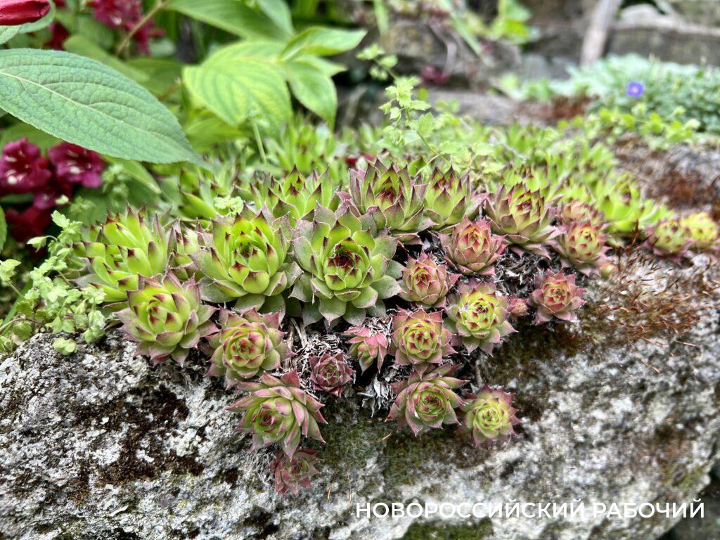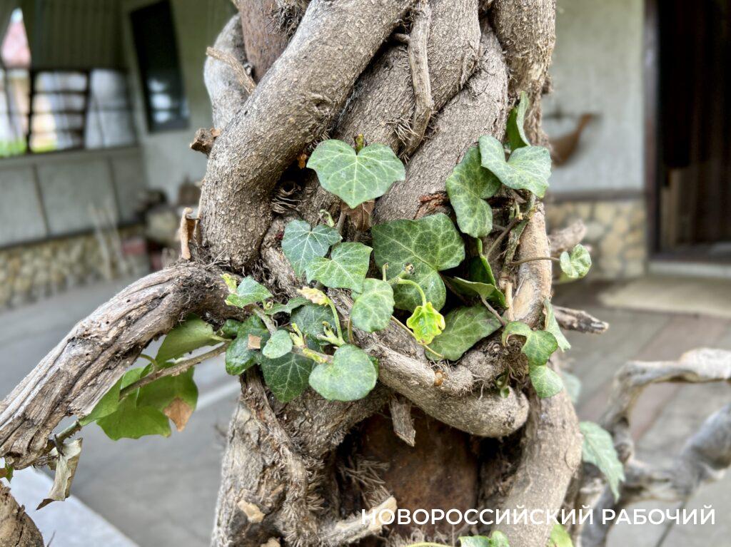 Алёнушка, как настоящий коллекционер, щедро делится с гостями проростками, саженцами и сеянцами. Умница, ей от этого прибудет. Мы набираем пакеты с каменной розой, петушками и лианами. Журналистская бригада записывается в очередь на проросток лианы с мясистыми, глянцевыми листьями, привезённой из Югославии, которая заплетает фасад дома Сердюков. Девичий виноград, распространённый в Новороссийске, ей по красоте листьев в подмётки не годится.