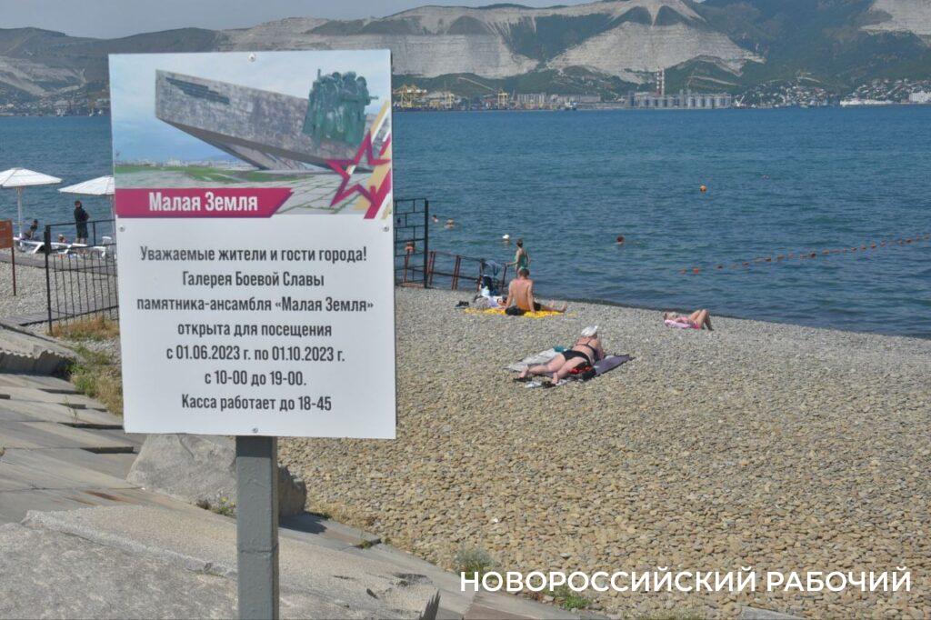 Пользователем пляжа установлены таблички, запрещающие купание и принятие солнечных ванн на территории памятника-ансамбля «Малая земля». Урез воды у памятника-ансамбля включен в перечень мест, запрещенных для купания людей на морском побережье муниципального образования город Новороссийск».
