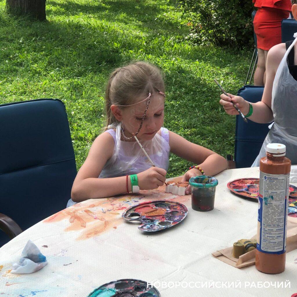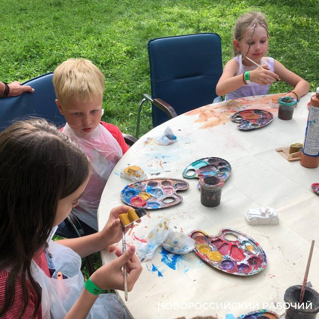 Островком счастливого детства стал на субботу-воскресенье и арт-парк в Абрау-Дюрсо. Подарки самому себе можно было нарисовать, слепить, склеить, сшить. Так и делали дети и их родители, поучаствовав в мастер-классах. Надев фартуки, все желающие лепили фигурки из солёного теста, раскрашивали гипсовых божьих коровок, шили куклы-обереги. Мальчишки с воодушевлением клеили самолётики и запускали их по аллеям парка.