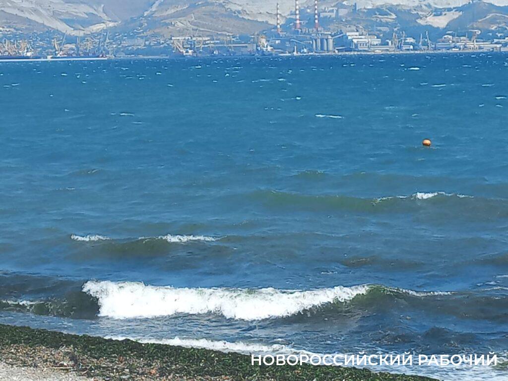 Если пройти по набережной, то видны бегущие «барашки». Волны захлестывают берег, забрасывают его водорослями и мусором с моря. Но это не мешает отдыхающим. Вода ведь тёплая. Хотя, внимательнее! Как знают все новороссийцы, «ветреный» загар быстрее перерастает в ожог кожи.