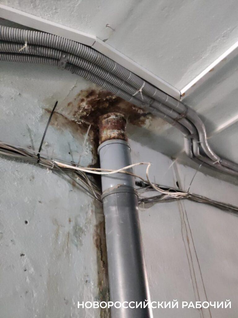 В общем коридоре на стенах и потолке верхнего этажа видны следы от протечек кровли. Страшнее всего от того, что течёт рядом с электрощитками.