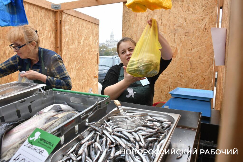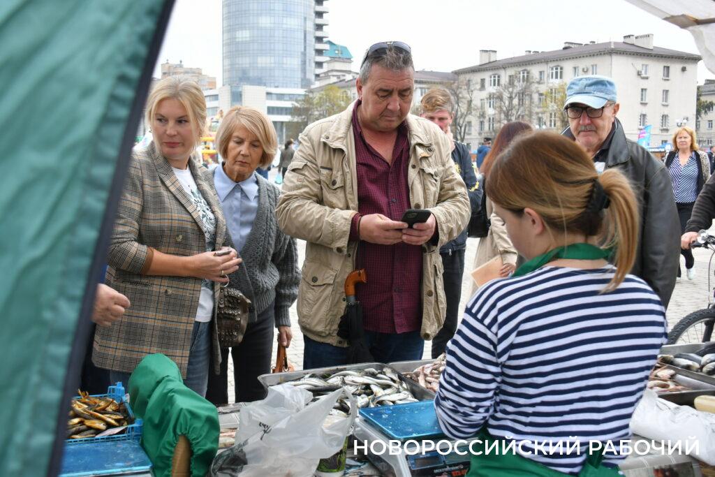 Ровно в полдень на площади перед морским вокзалом на прилавки стали выставлять первые лотки с хамсой. Гости фестиваля с нетерпением ожидали, когда же начнется торговля.