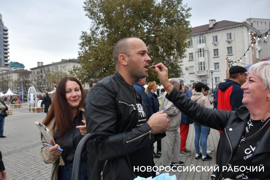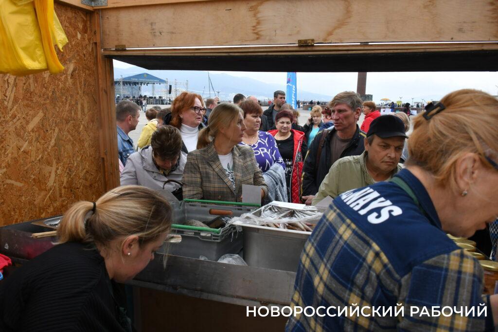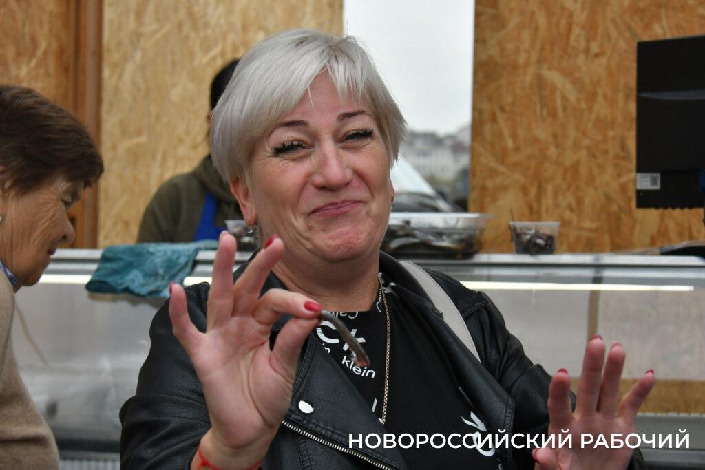 Рыбу дегустирует Елена Ковтун, экскурсовод из города Анапы. Она привезла в Новороссийск группу туристов. Пока гости осматривают крейсер «Михаил Кутузов», она пошла на дегустацию, чтобы затем поделиться ощущениями с группой.