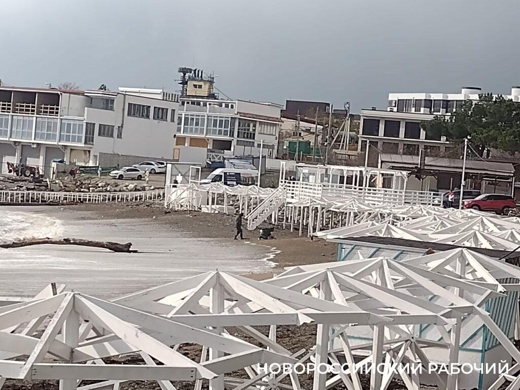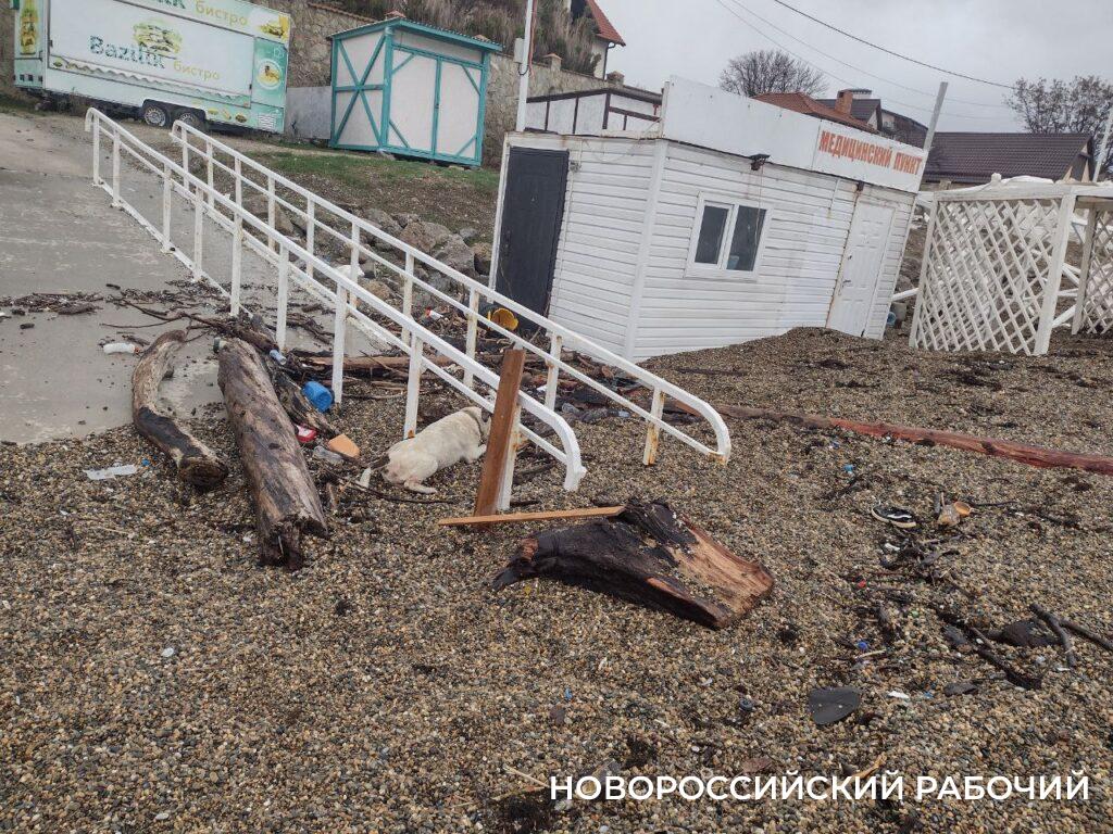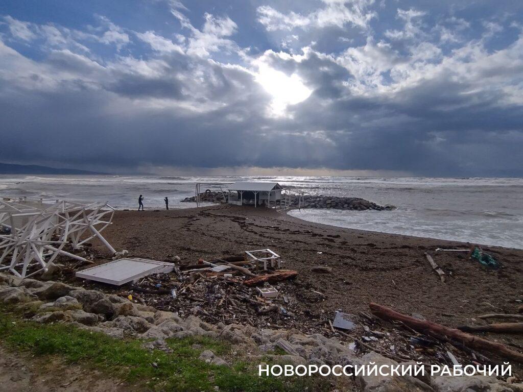 Пляж Мысхако, или как его в последние годы называют, зона отдыха, выстоял в циклон, лишившись всего-то десятка деревянных зонтиков, которые арендаторы поленились демонтировать, несмотря на грозные прогнозы МЧС. Каменный навал, призванный укрепить берег, превратился из полуострова в остров. Теперь его со всех сторон омывает море.