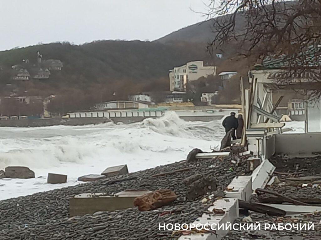 Возле нового апарт-отеля раньше стояли симпатичные деревянные бунгало. Сейчас перед входом в гостиницу несколько лежащих крыш, под ними куски досок. Снесены почти все нестационарные торговые точки. Люди со смартфонами вереницами направляются в павильончик, где раньше, кажется, было кафе. Конструкция находится близко к морю – оттуда хорошо видно, как оно бушует и как все разбито. В помещении выбиты окна и двери, галька внутри, сломаны стулья и столы, перевернут холодильник.