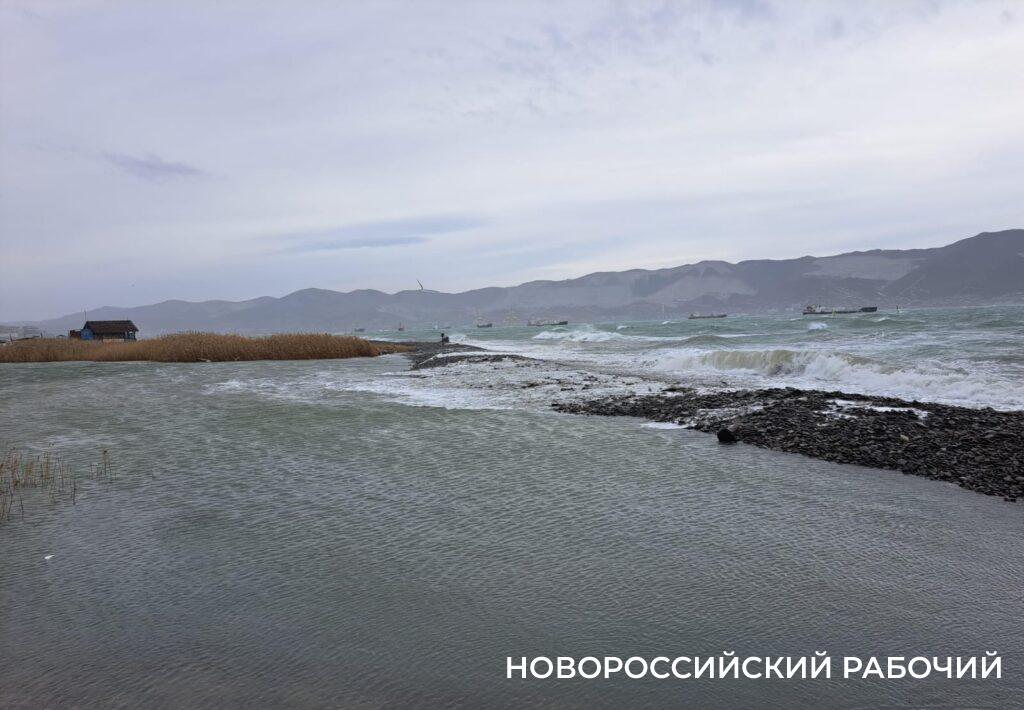 С утра вчера было видно, как морские волны заливают Суджукскую лагуну в том месте, где находится проран. Более пресная вода лагуны разбавлялась морской водой. Шторм разошелся так, что морская вода заходила в озеро Соленое и с той стороны, где проложена дорожка из плитки. Во второй половине дня стало понятно, что волны натащили в проран еще больше гальки, чем было.
