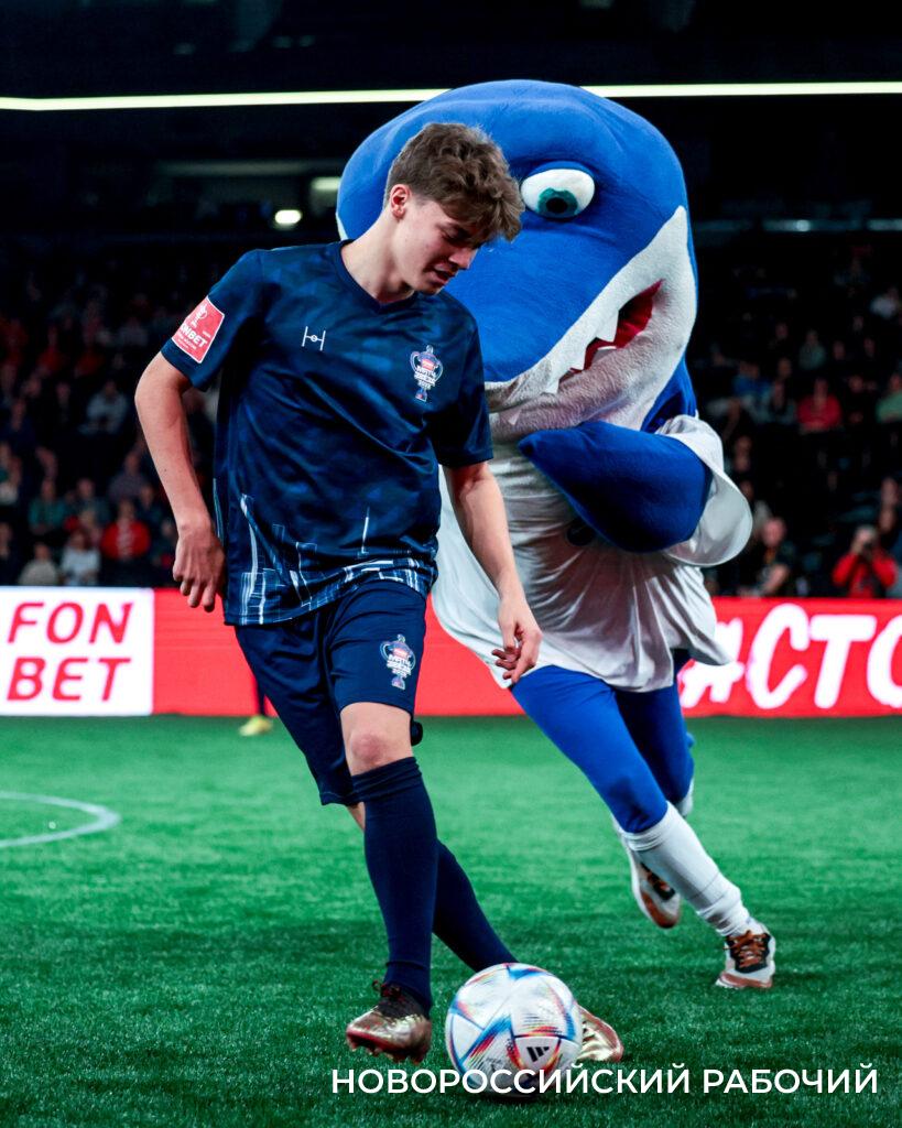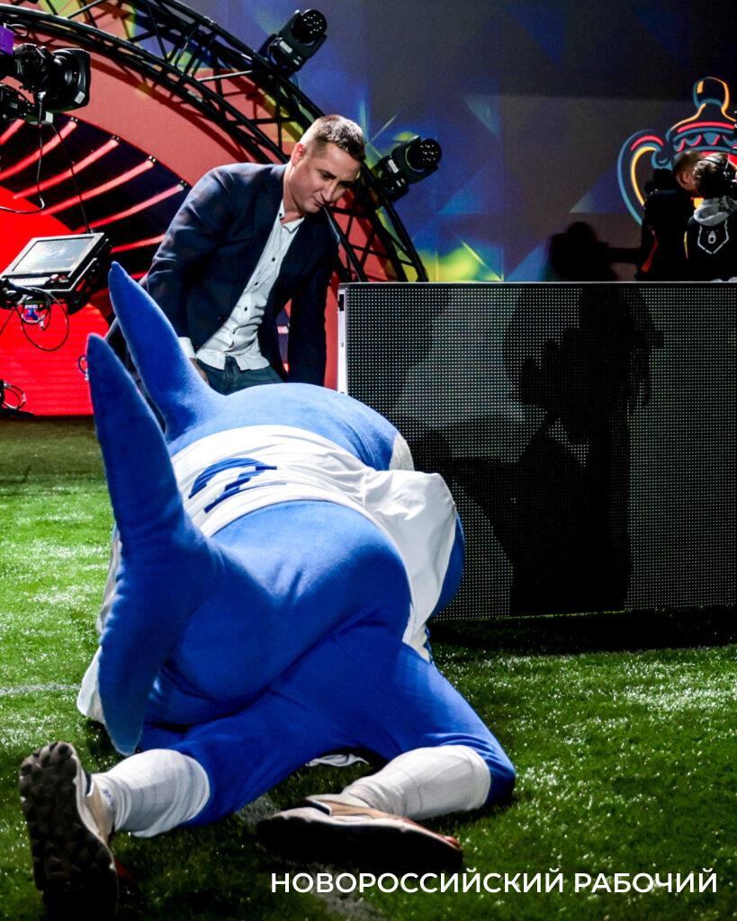 Что должен делать футболист после предъявления ему красной карточки? Правильно, покинуть поле. Но это футболист, а Акула-катран как ни в чём не бывало пробрался к мячу, схватил его и побежал к воротам соперника. По дороге наш талисман толкали футболисты как одной, так и другой команды, но новороссийский катран всё-таки протолкнул мяч в ворота и был за это припечатан к сетке вратарём Евгением Фроловым. Добившись желаемого, Акула-катран отправился есть праздничный торт, и, как нам показалось, организаторы этого даже не заметили.