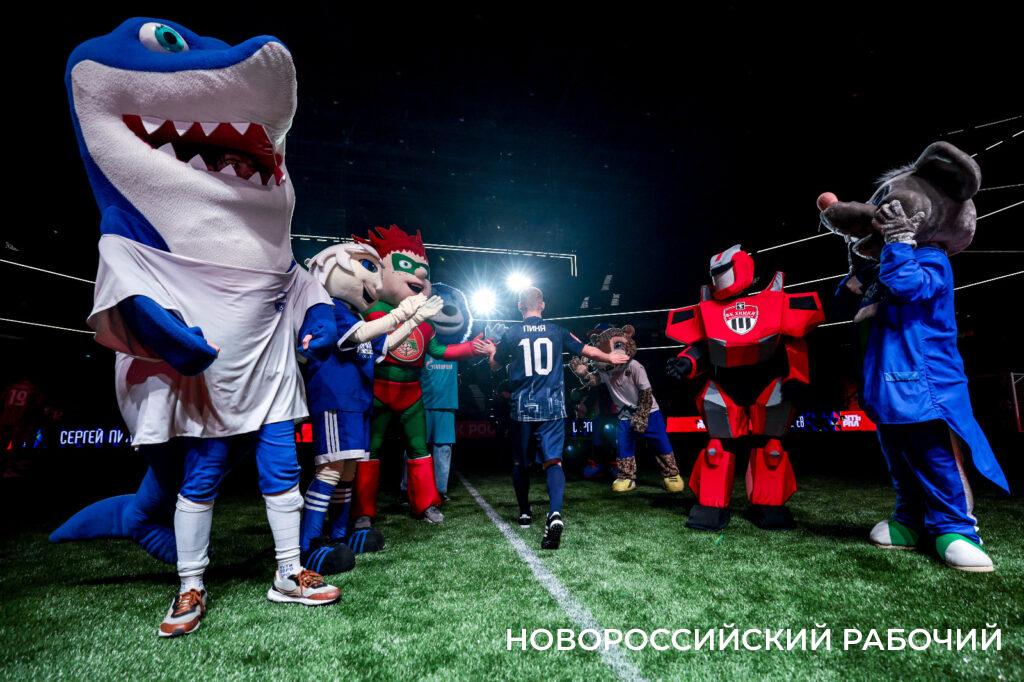 Пока шло представление команд, на поле было буквально не протолкнуться от талисманов клубов, игроки которых получили места в составах сборных. И снова наш Акула-катран затмил всех. Чего только стоил бросок в ноги Владимиру Быстрову!