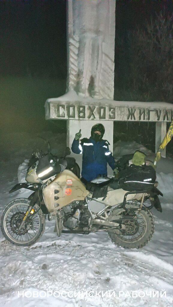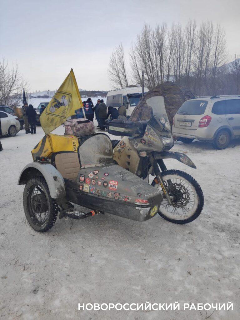 – На время выезда из города настоящая зима ненадолго пришла и в Новороссийск. Температура доходила до минус 8 градусов по Цельсию. Мы с напарником выезжали уже на шипованных колесах. В дороге очень сильно мерзли, невзирая на экипировку: термобелье, самонагревающиеся стельки. Не спасала даже функция подогрева руля на мотоцикле. Мерзли оба. В самых тяжких ситуациях, когда отмерзало все, я передавал руль напарнику, хотя в коляске тоже не очень-то можно было согреться.
