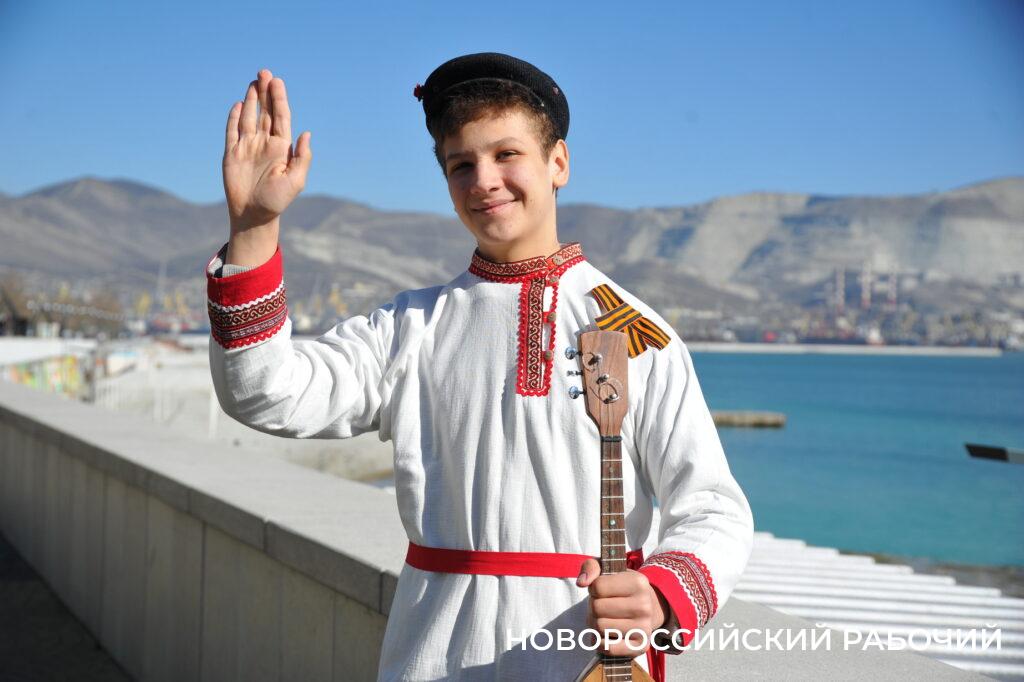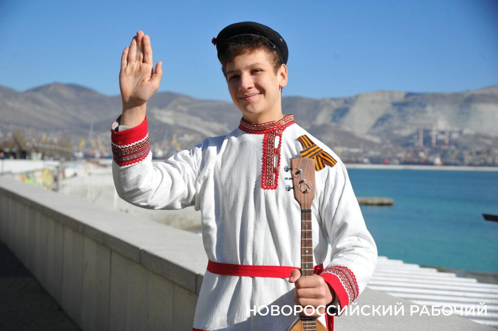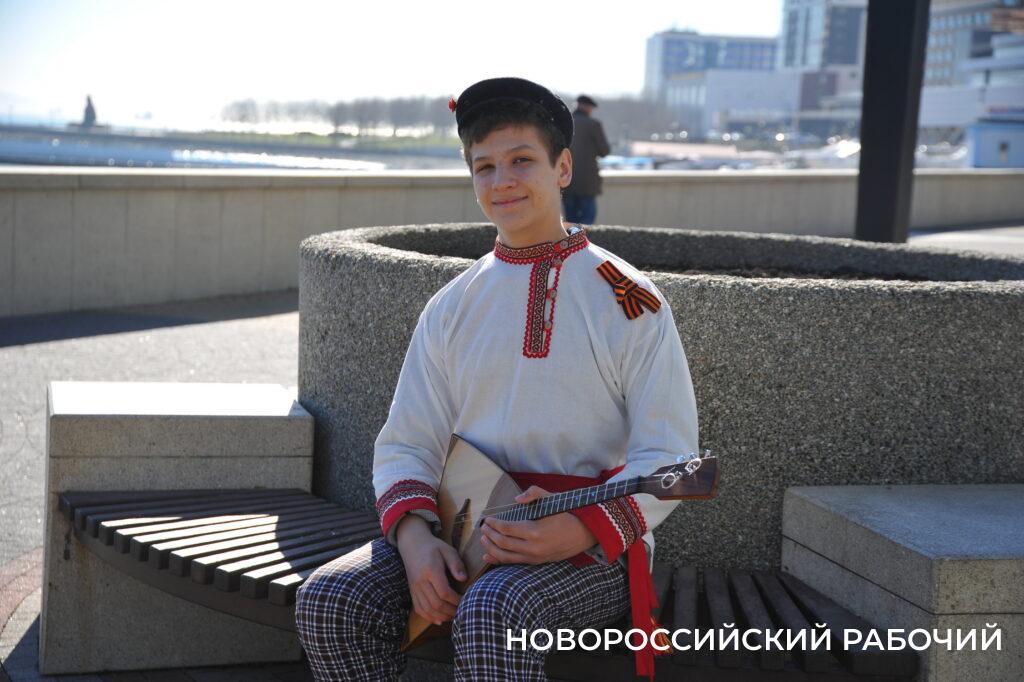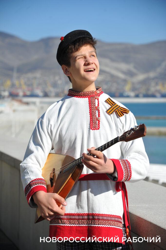 Появление мальчика с балалайкой на набережной Новороссийска произвело настоящий фурор. Для юного артиста мама Нина придумала костюм: он выступает в русской косоворотке.