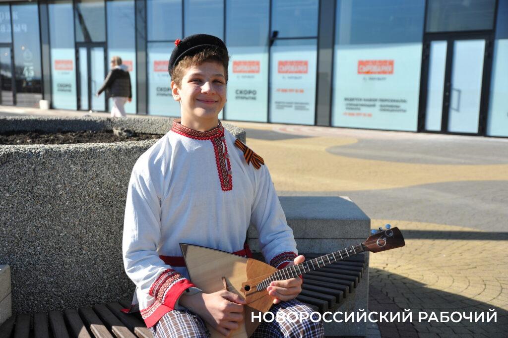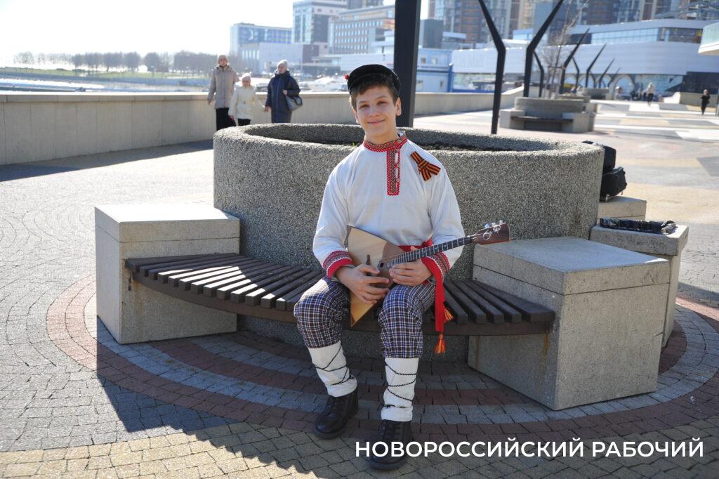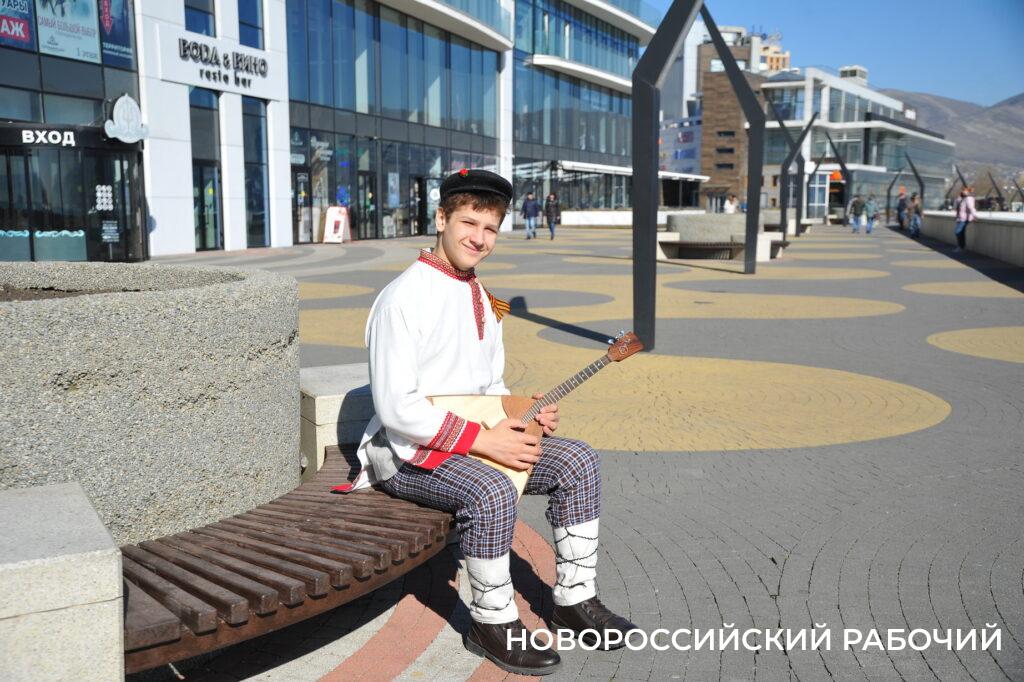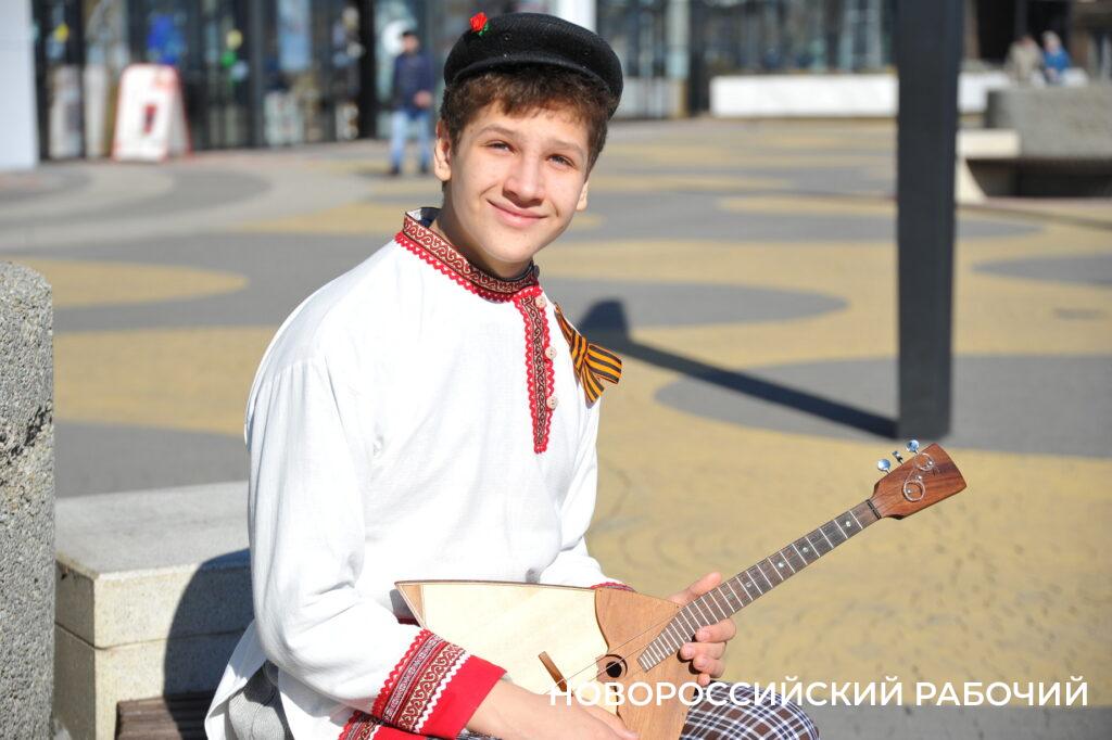В русской косоворотке, с картузом на голове артист играет на балалайке песню «Вдруг, как в сказке, скрипнула дверь» из любимого всеми жителями нашей большой страны советского фильма. Прохожие, гуляющие по набережной, снимают выступление подростка на мобильники, подпевают исполнителю, аплодируют и просят на бис. Видно, что выступление на публике – это любимое занятие молодого человека, он это делает так артистично, что губы зрителей расплываются в улыбках. А как можно не улыбаться, когда перед тобой такое кудрявое чудо!