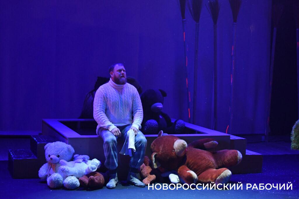 Находка режиссера – сопроводить одного из главных героев – Юношу – Медведя (его играют Алексей Травкин и Дмитрий Федотов) плюшевыми дублерами – медвежатами всех размеров и мастей. Они – тоже безмолвные участники спектакля.