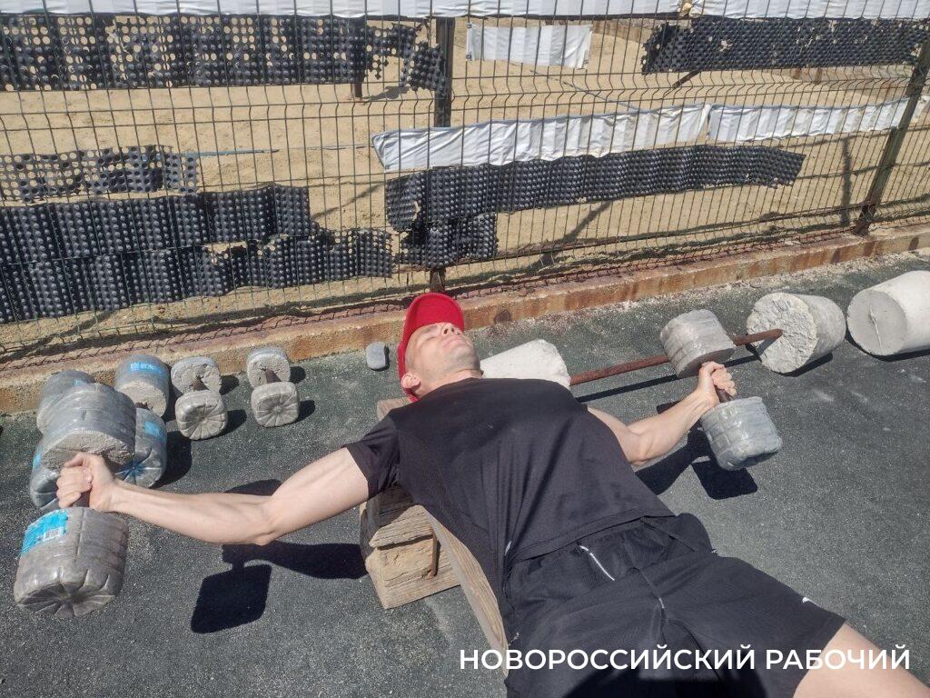 Идея усовершенствования старой спортплощадки пришла в голову Евгению Герасимову, в прошлом жителю Краснодара, а ныне новороссийцу. Четыре года назад он в первый раз пришел на косу и стал там тренироваться.