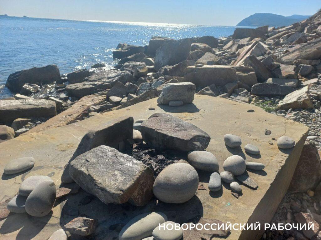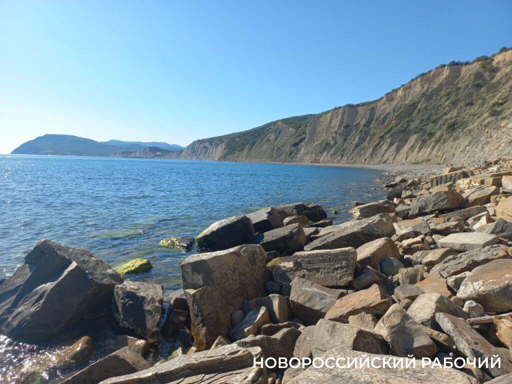 Как бы там ни было, на этом пляже охватывает чувство умиротворения. Вокруг крутые, причудливо изрезанные трещинами и каменными прожилками скалы. Вода прозрачная. И не холодная. Журналист «Новороссийского рабочего» убедилась в этом сама. Намочить ноги было приятно и бодряще. И не хотелось выбегать на берег через 10 секунд водных процедур. Отдыхать летом на не тронутом арендаторами пляже — тоже удовольствие. Здесь некрупная галька и хороший спуск в воду.
