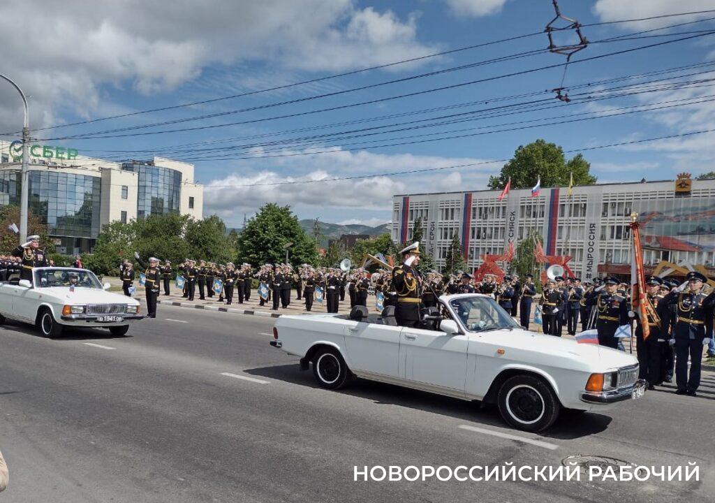 Традиционно, Парад начался с выноса знамени Победы. Парад принял начальник новороссийского гарнизона Виктор Кочемазов. Он поздравил всех в праздником. Минутой молчания собравшиеся почтили память погибших.