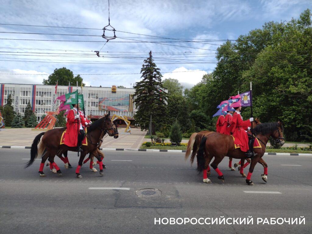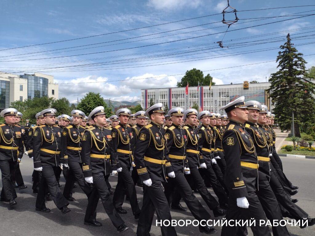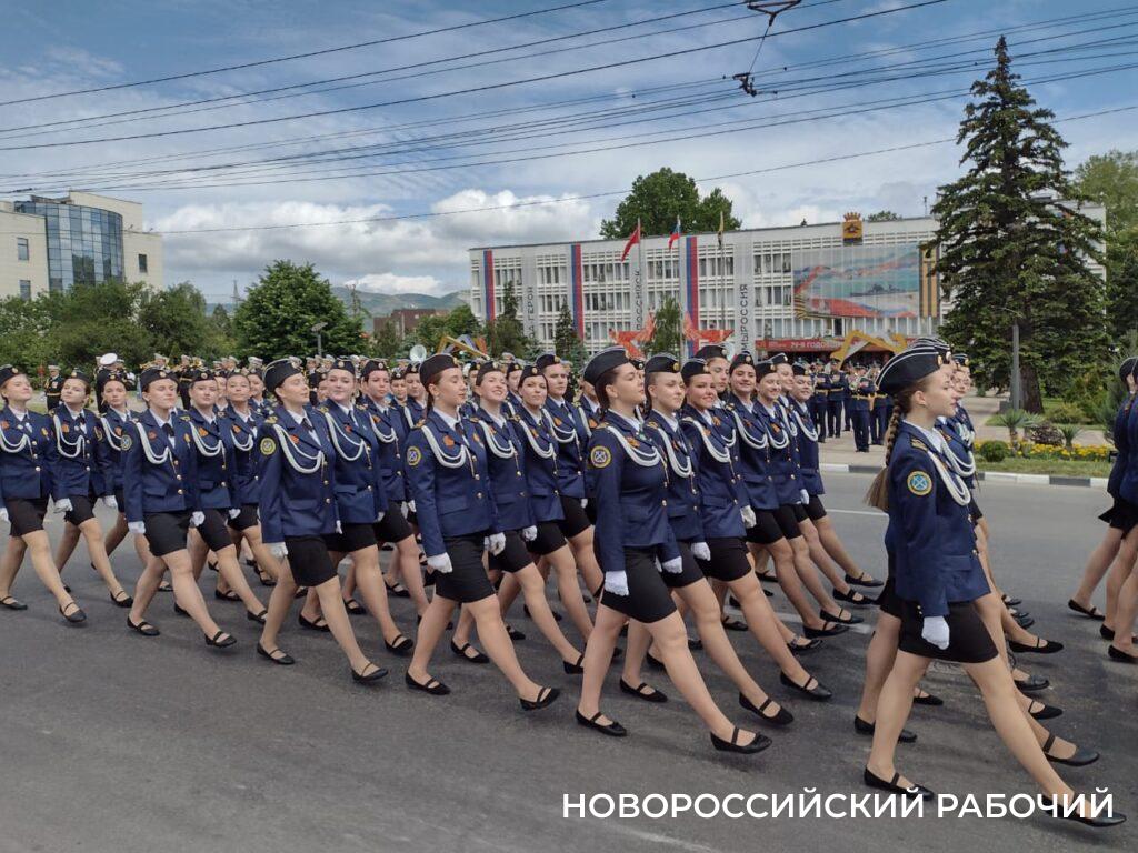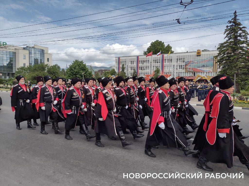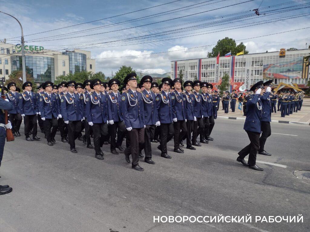 Парадным маршем прошли представители разных родов и видом Вооруженных Сил России, пограничники, казаки, курсанты.