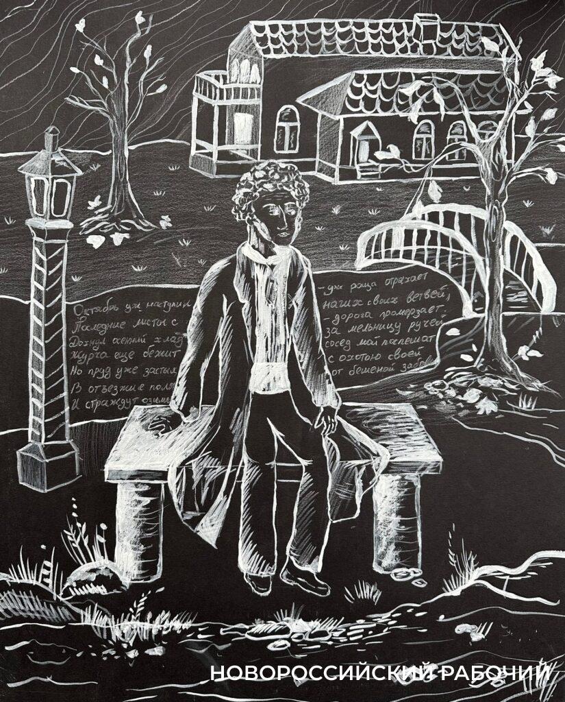 Всего на конкурс со всей России прислали 7 321 работу, допустили до участия 6 715. Как же приятно, что почти три десятка рисунков из Новороссийска были отмечены жюри. На рисунках и сам поэт такой, каким он представляется детям. Обычно с пером и листом бумаги. Задумчивый, сочиняющий свои волшебные сказки. В окружении любимых персонажей – золотой рыбки, русалки, царевны Лебедь, белки, поющей песенки, королевича Елисея… Их много, а Пушкин один, и на каждой картине он разный.